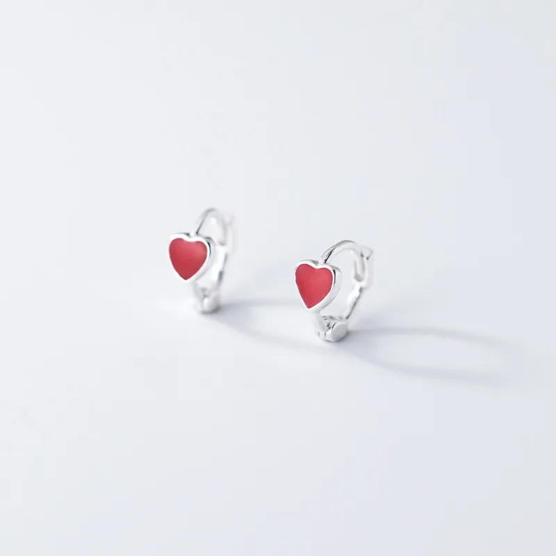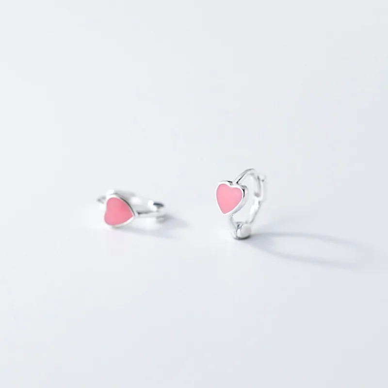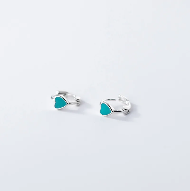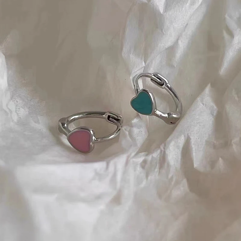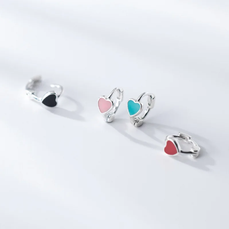 ANENJERY Colorful Drop Glaze Heart Hoop Earrings for Women Girl Simple Sweet Delicate Silver Color Small Huggies серьги