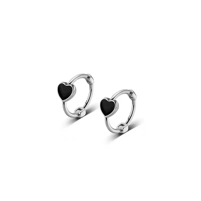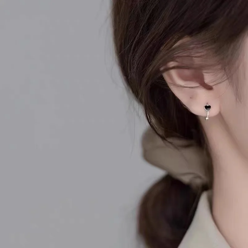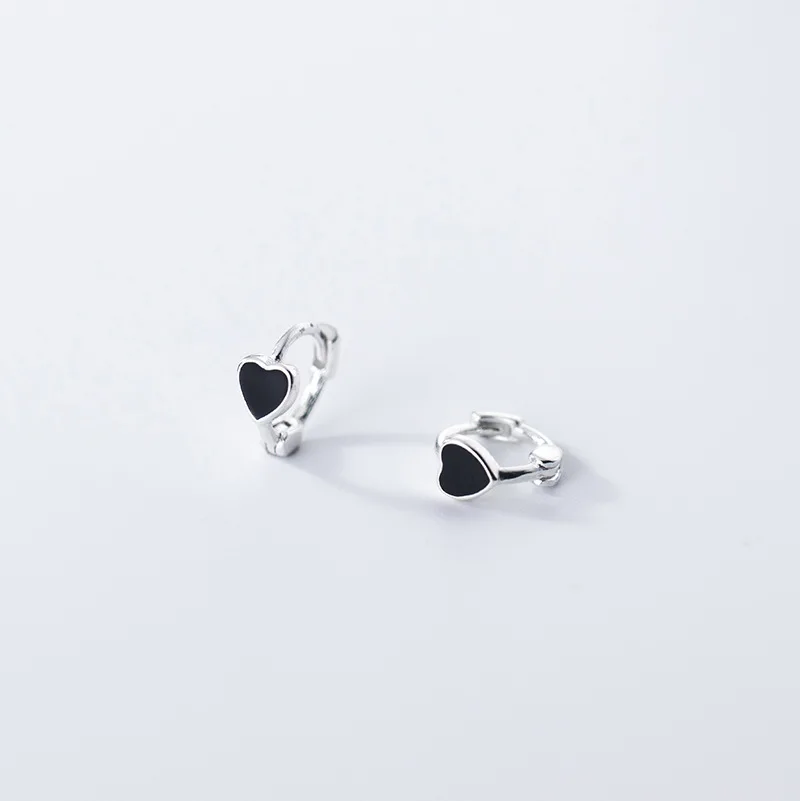 925 Sterling Silver Black Heart hoop Earrings Temperament Simple Inlaid for Women Wedding Jewelry Accessories