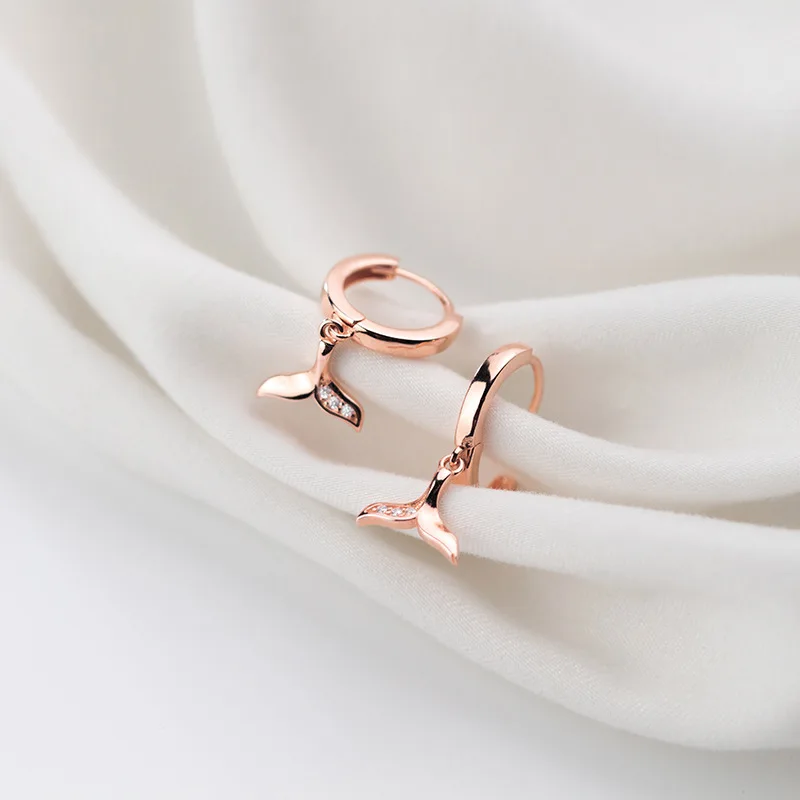 ANENJERY Silver Color Mermaid Tail Zircon Hoop Earrings Rose Gold Earring Jewelry For Women Gifts S-E1107