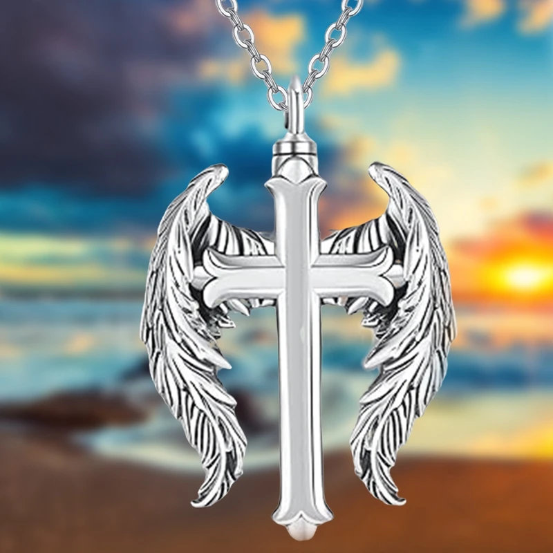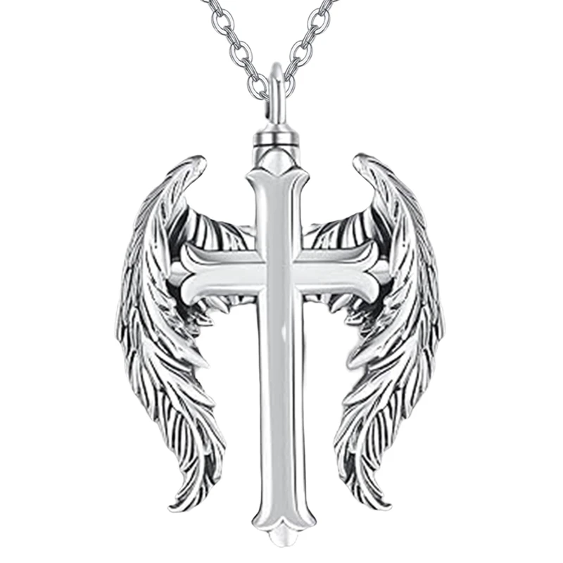 Angel Wing Cremation Jewelry for Ashes Silver Color Urn Necklace Memorial Necklace for Human Ashes of Loved Ones Keepsake