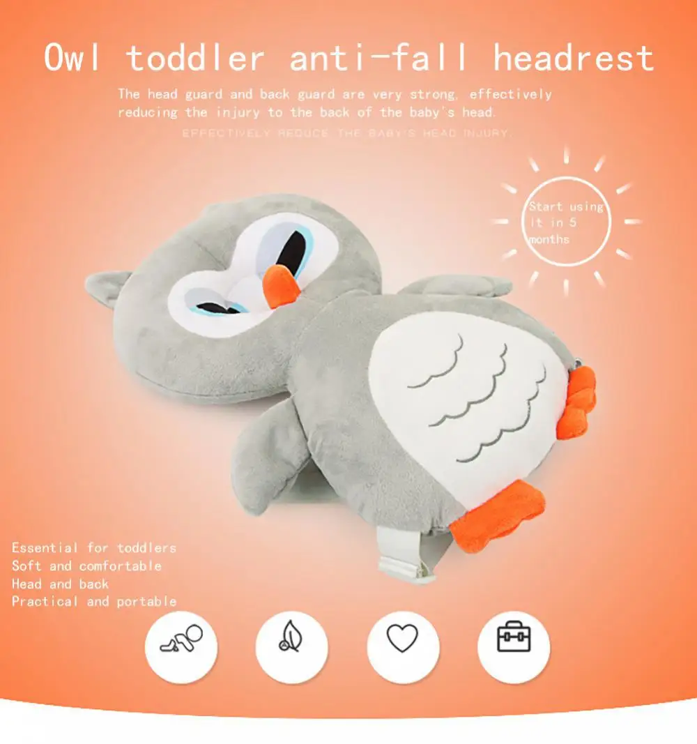 Anti-fall Pad Baby Pillows Owl Headrest Baby Anti-fall Baby Anti-fall Head Protection Cartoon Pillow Protective Pad School Bag