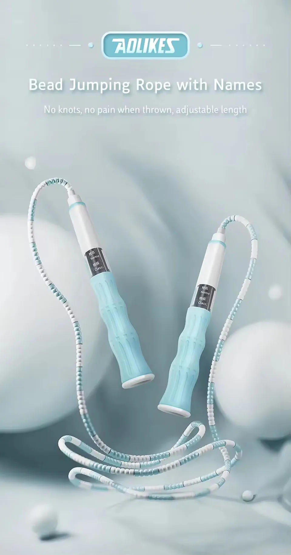 AOLIKES 2.8M Skill Jumping Bamboo Jump Rope PVC Beginners Adult Children Soft Beaded No Tangle Segmented Fitness Jump Rope
