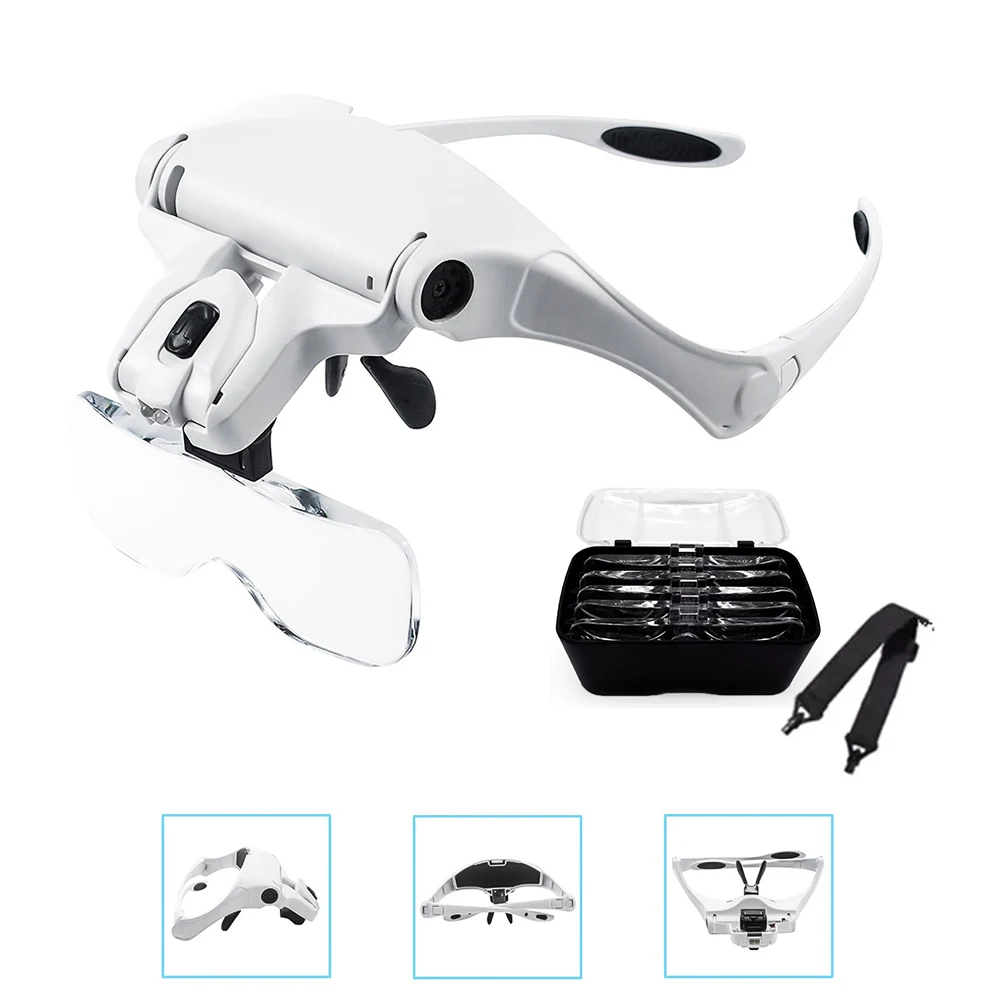 Aoresac 9892B2 Magnifying Glass for Reading with LED Light And Headband Hands Free Head Magnifier with 5 Lenses 1.0X – 3.5X