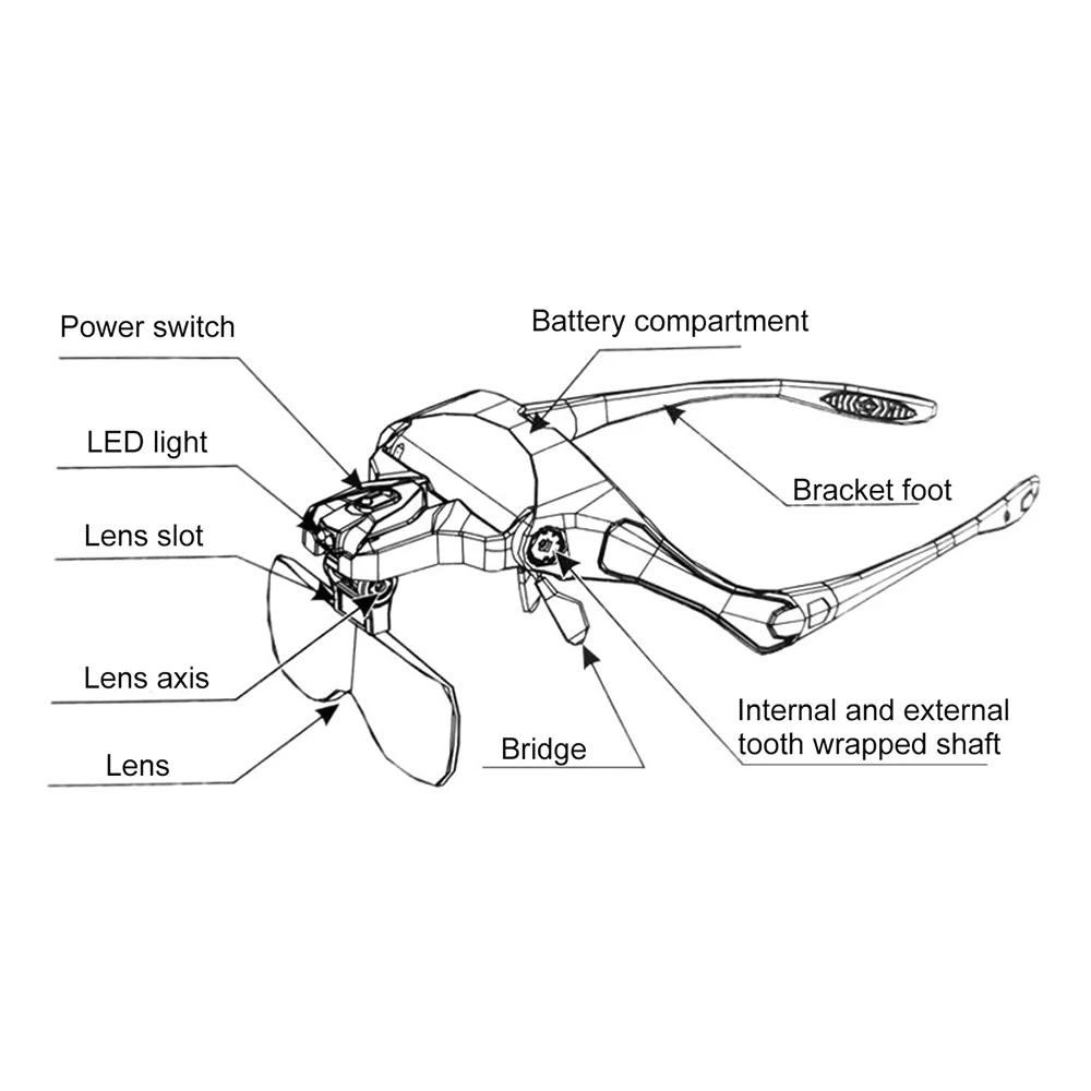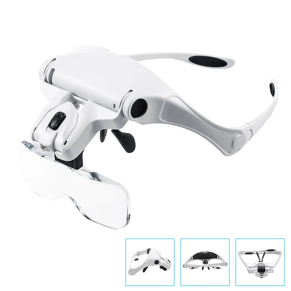 【Magnifying Glass with Lights】The head magnifier features two super-bright LED lights that are adjustable in angle and integrated into the frame. The lights are powered by 3 AAA batteries (not included), providing ample illumination for any task.