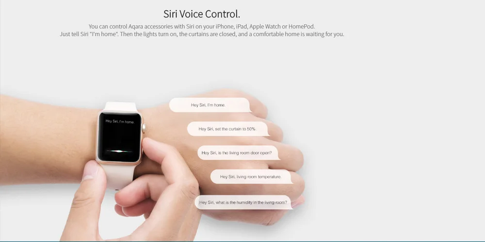You can control Aqara accessories with Siri on your iphone,iPad,Apple Watch.