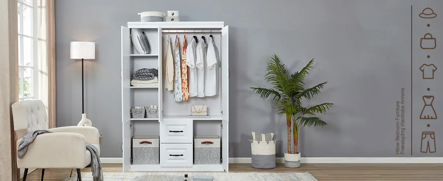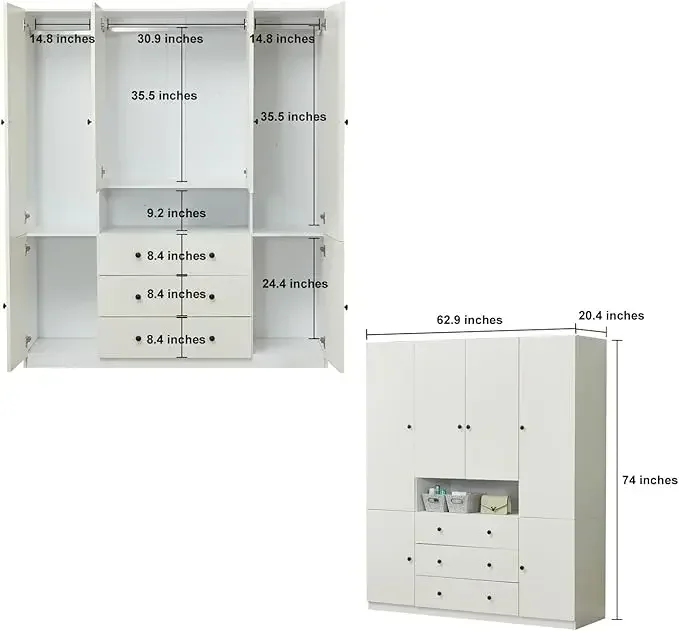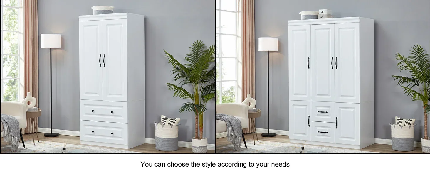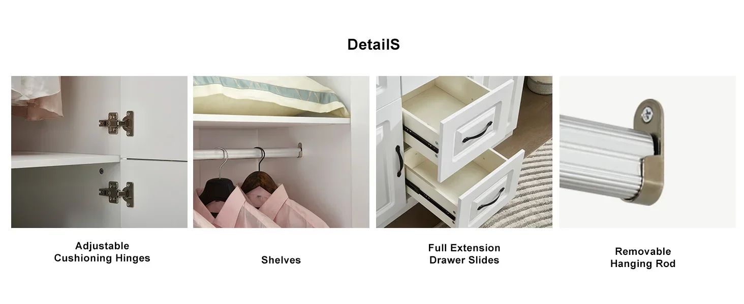 【Product Details】 – This white wardrobe is shipped in two package with all components clearly labeled for ease of Installation. Please note, the drawers are fixed and cannot be reconfigured