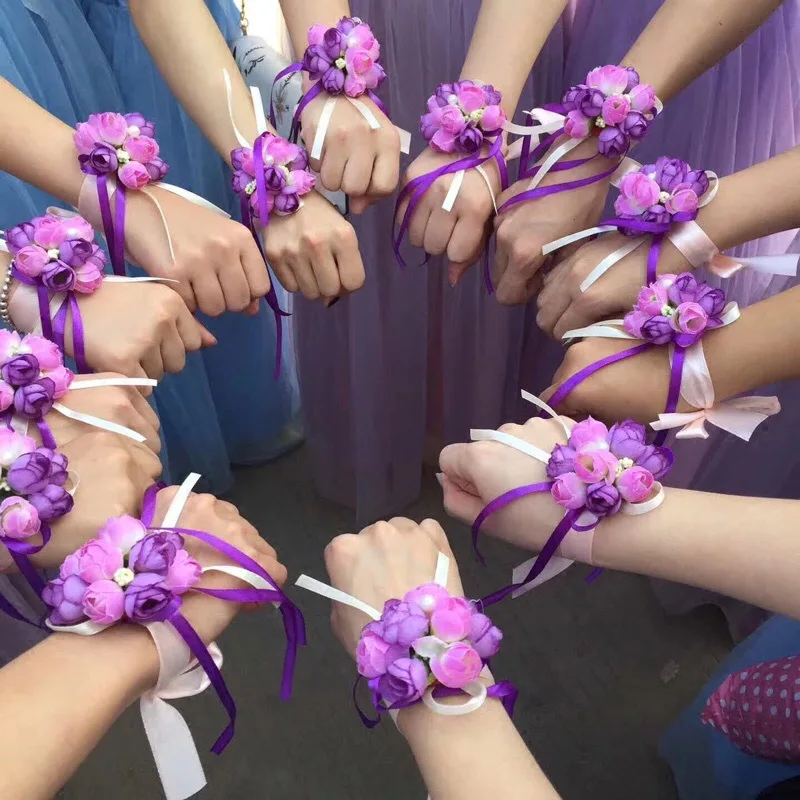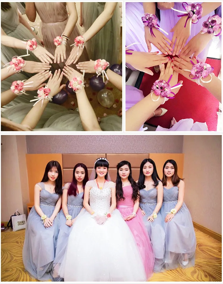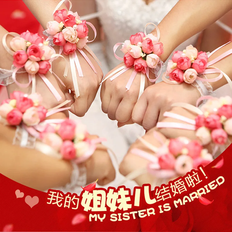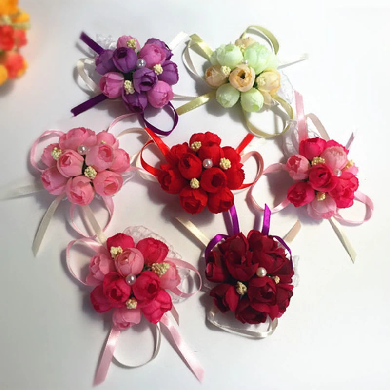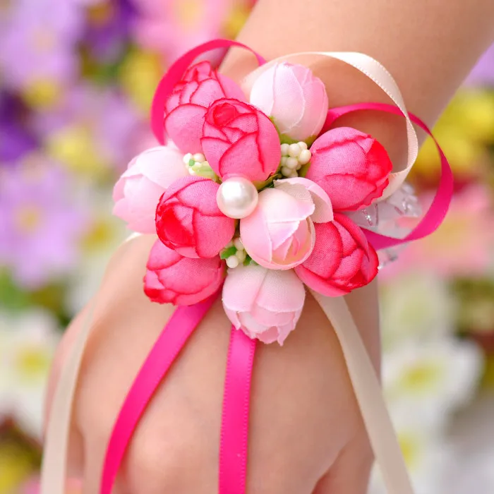 Artificial Rose Wrist Corsages Hand Flower Bridesmaid Silk Flower Bracelet Wedding Bridal Wrist Flower Accessories Party Decor