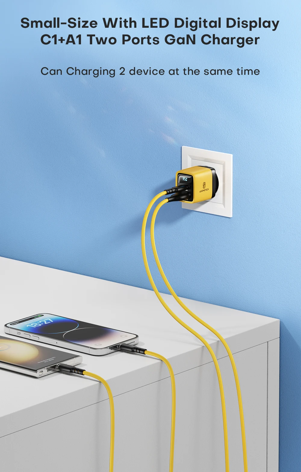 Asometech 35W 2-ports USB type C gan Wall Charger