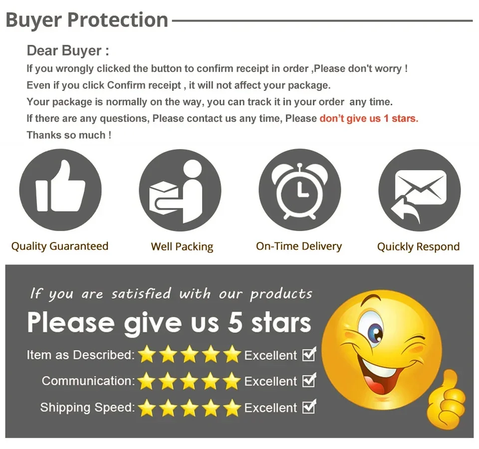 1.if you are satisfied with the items and our service, please take a minute to leave us a positive with 5 stars.