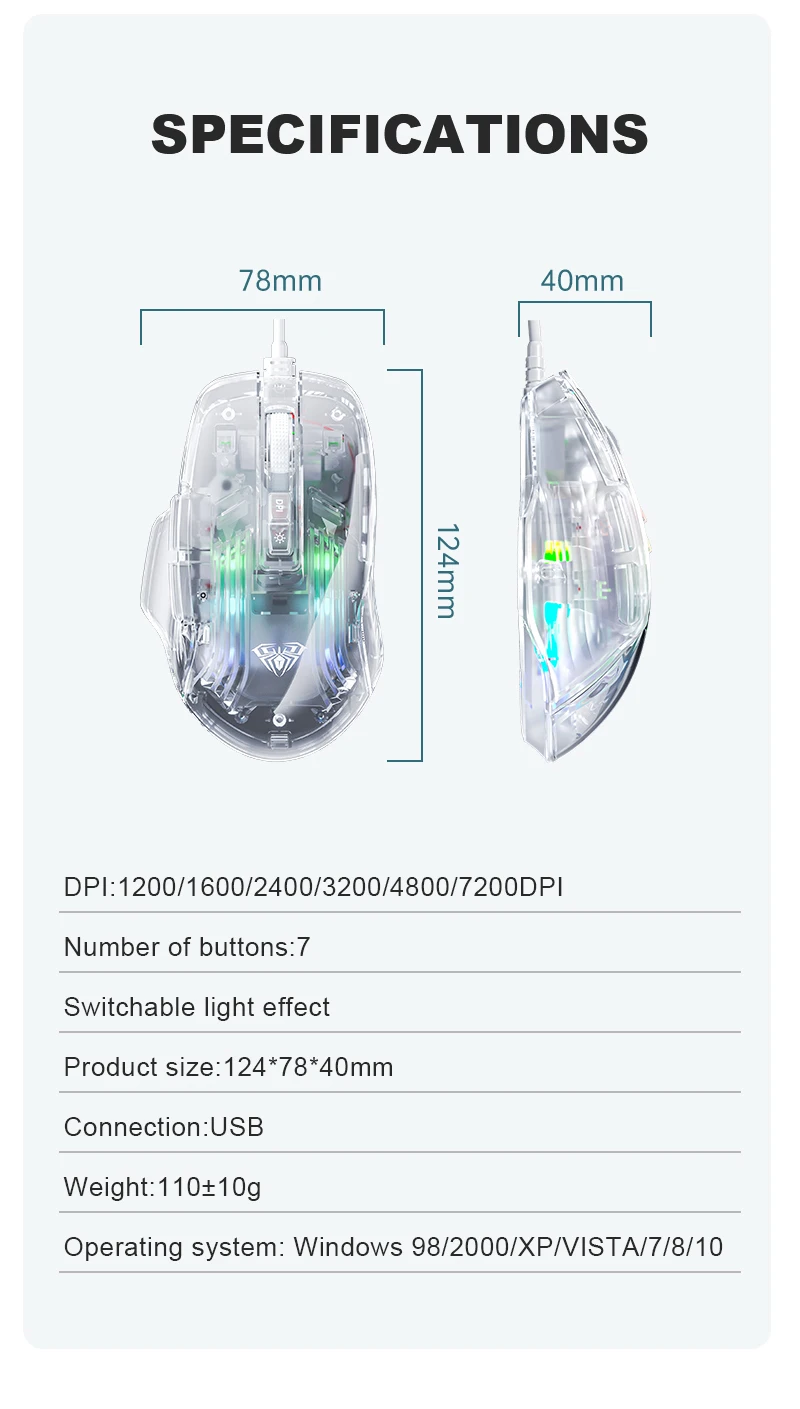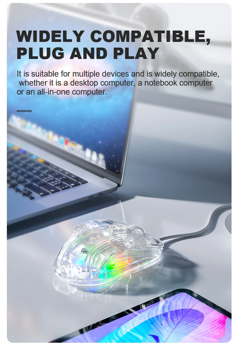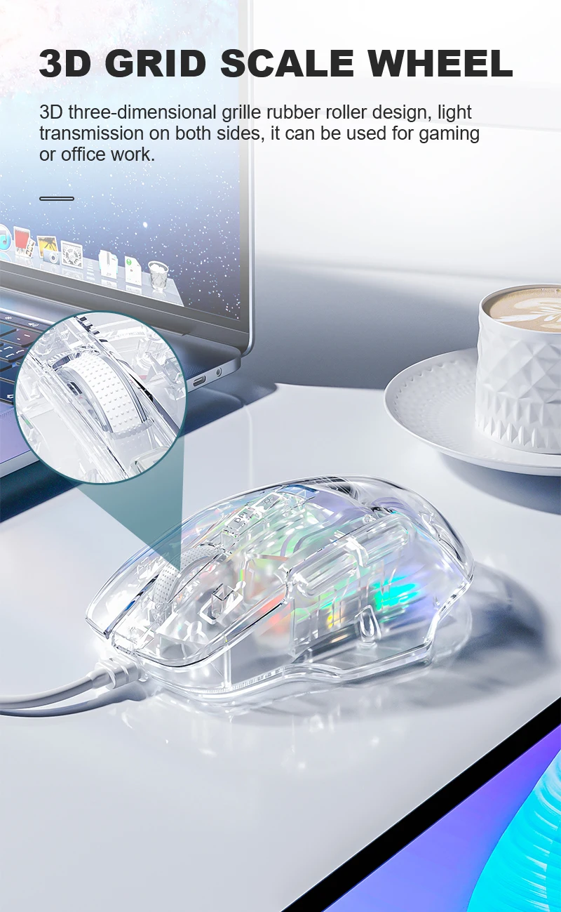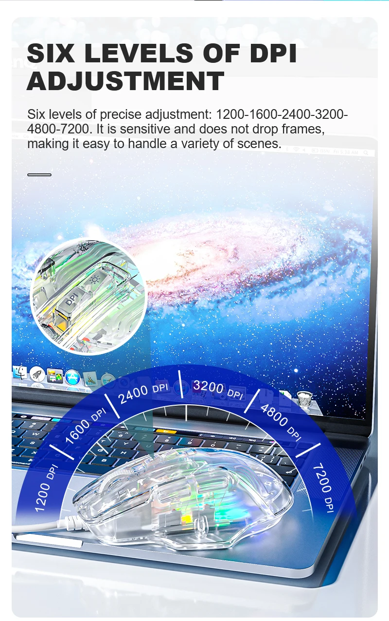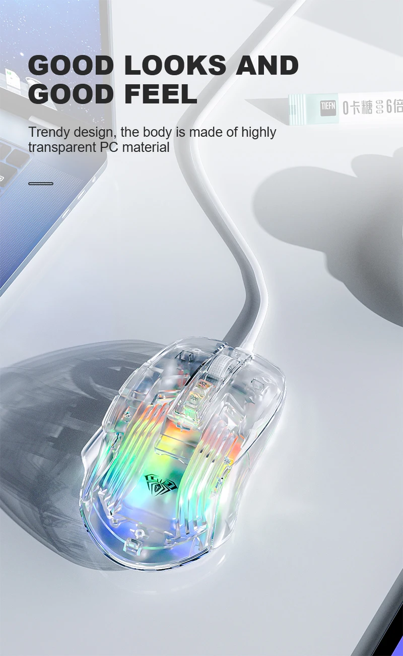 The AULA S80 is a transparent wired mouse. Here are some of its product features:
