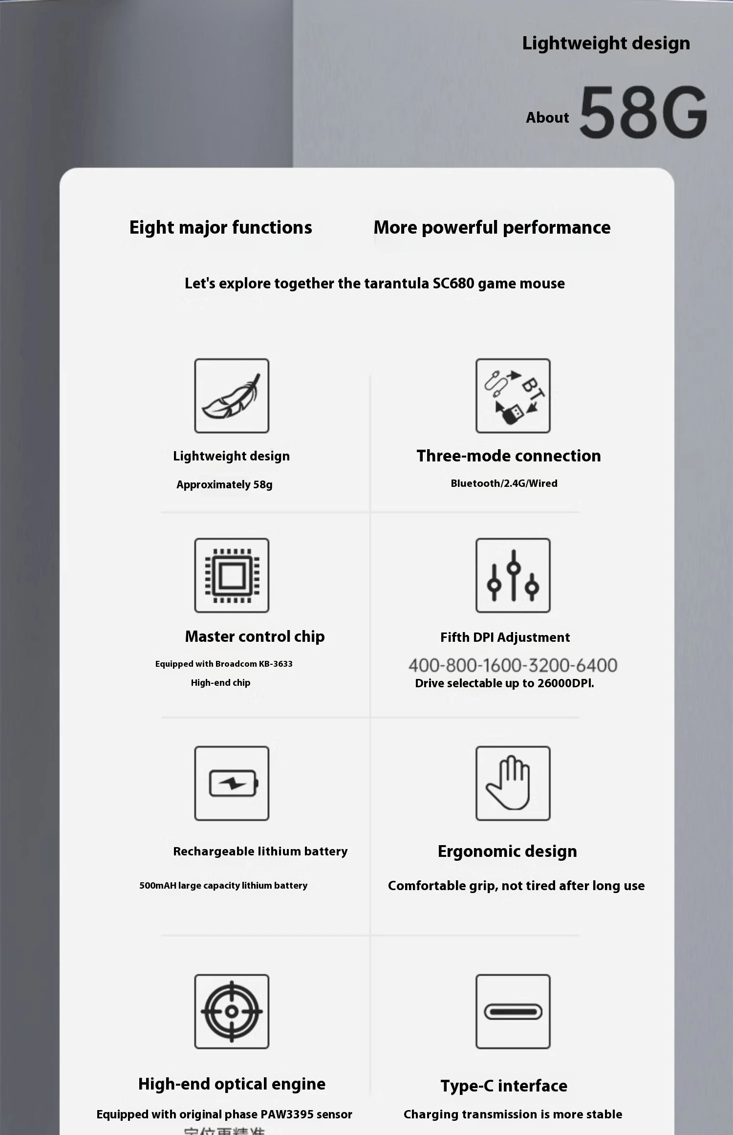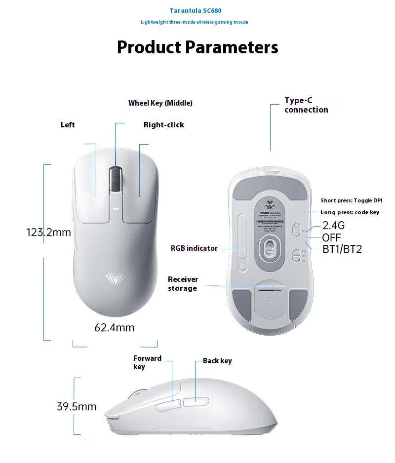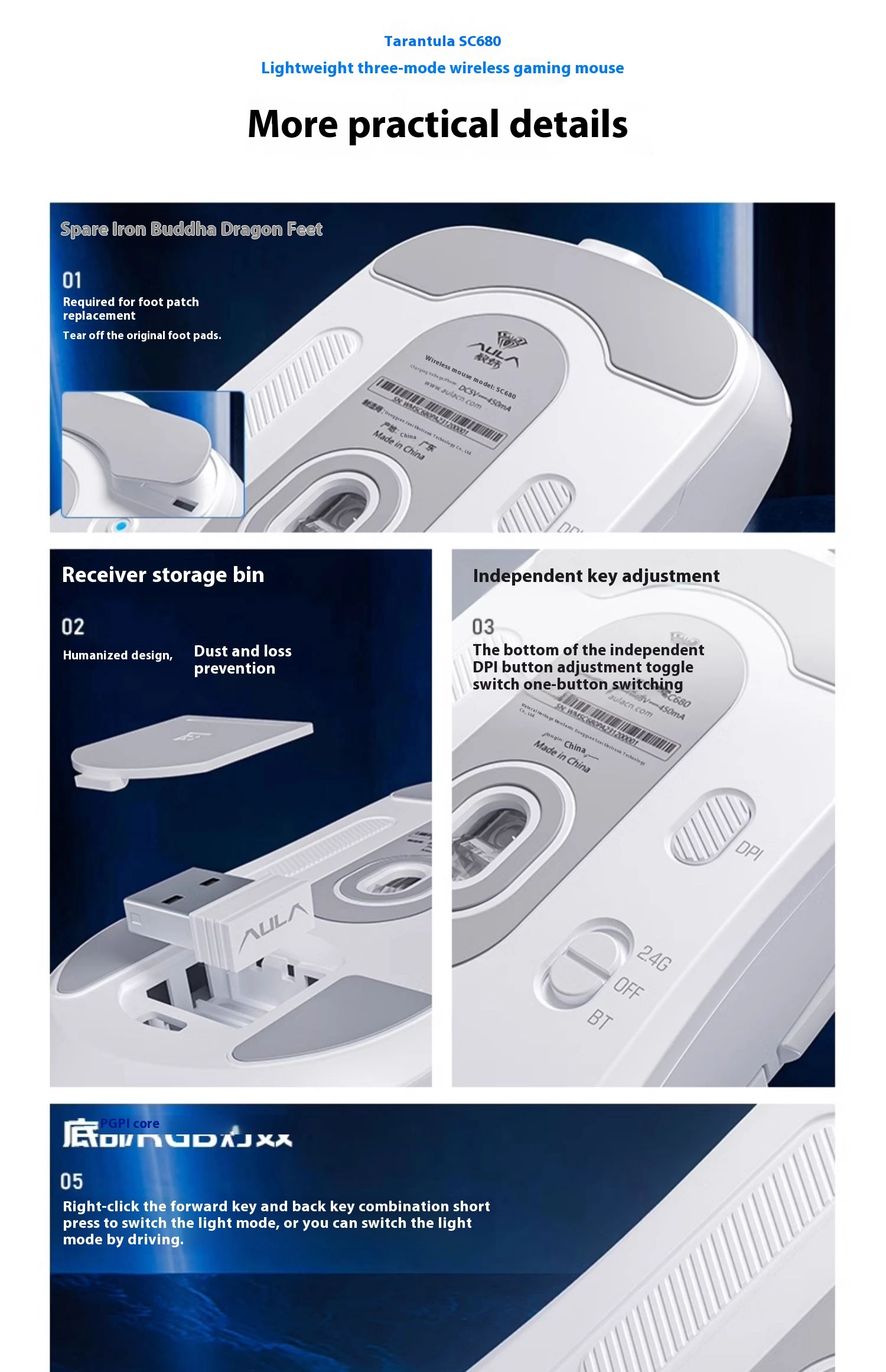 Aula SC680 Wireless Mouse 8k Return Paw3395 Tri Mode Bluetooth Ergonomics Mouse E-Sports Office Mice Pc Gamer Accessories Gifts