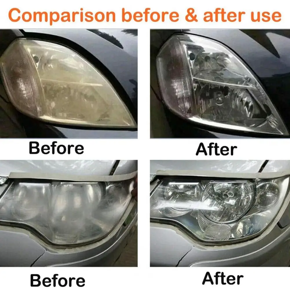 Experience a sharp contrast with our car headlight refurbishment kit. Witness the transformation from yellow-white to a new-like shine, eliminating severe scratches and restoring transparency. Say goodbye to blurred headlights and welcome improved visibility for safer driving experiences.