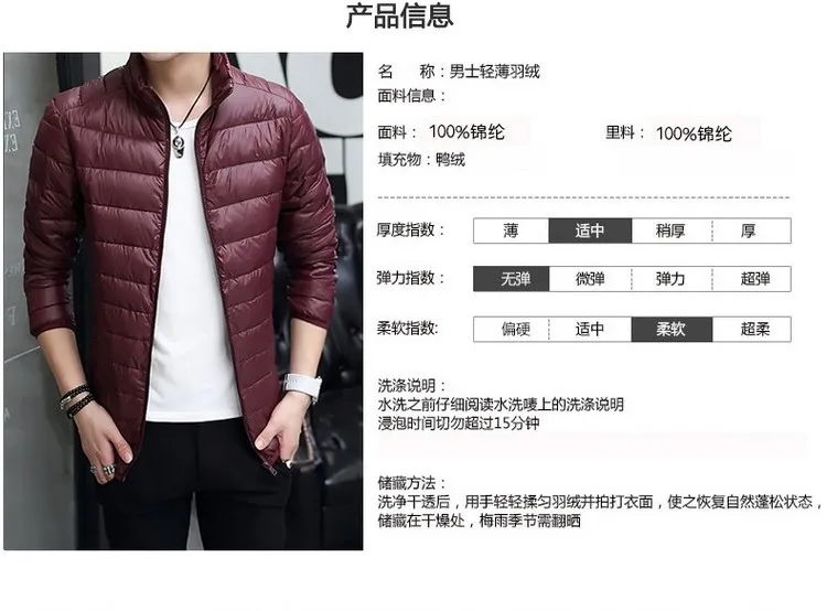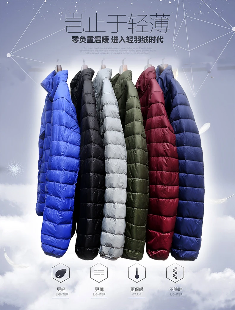Autumn and Winter Men’s Outdoor Camping Sports Mountain Skiing Light Fashion Goose Down Warm Stand Collar Down Jacket