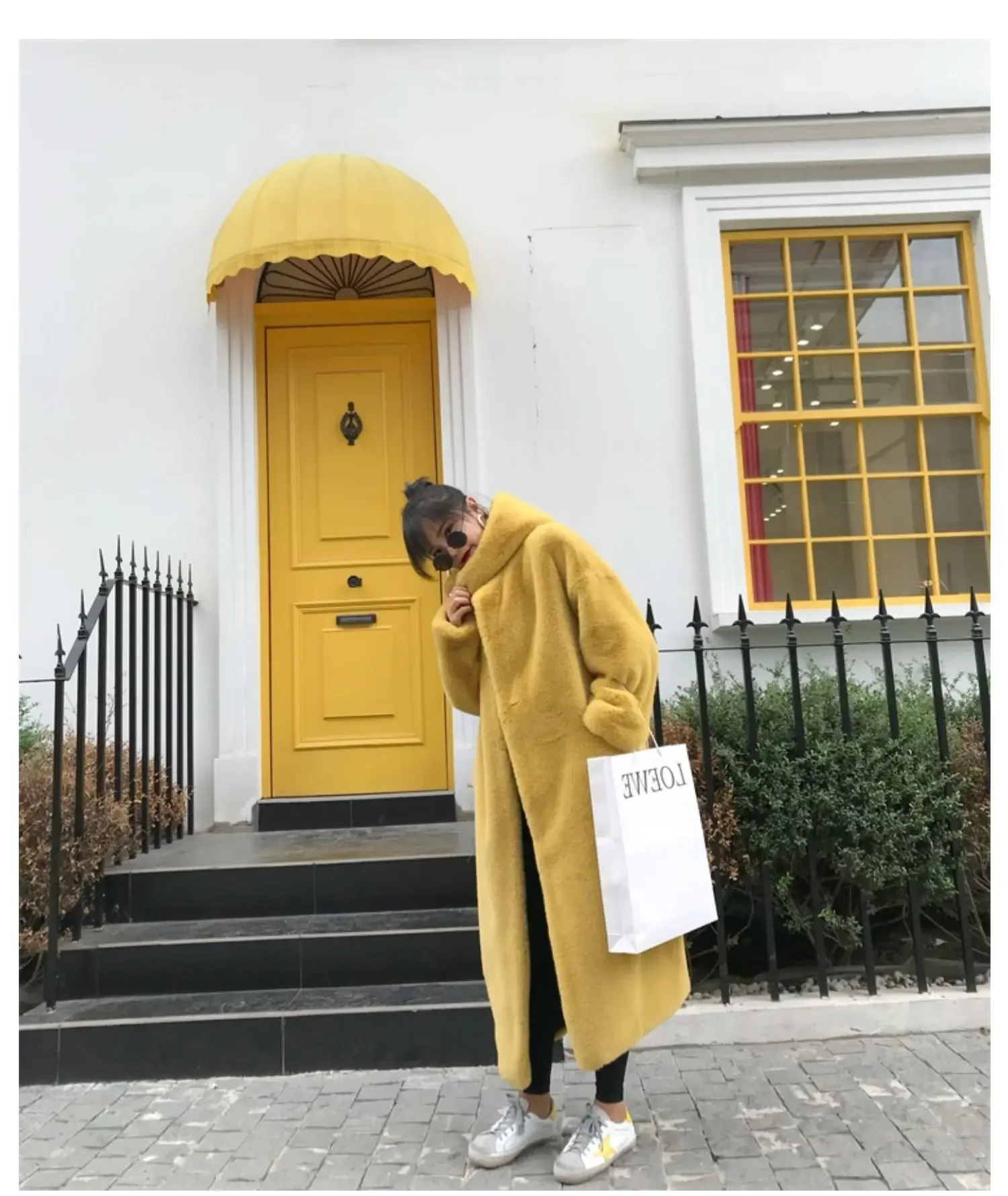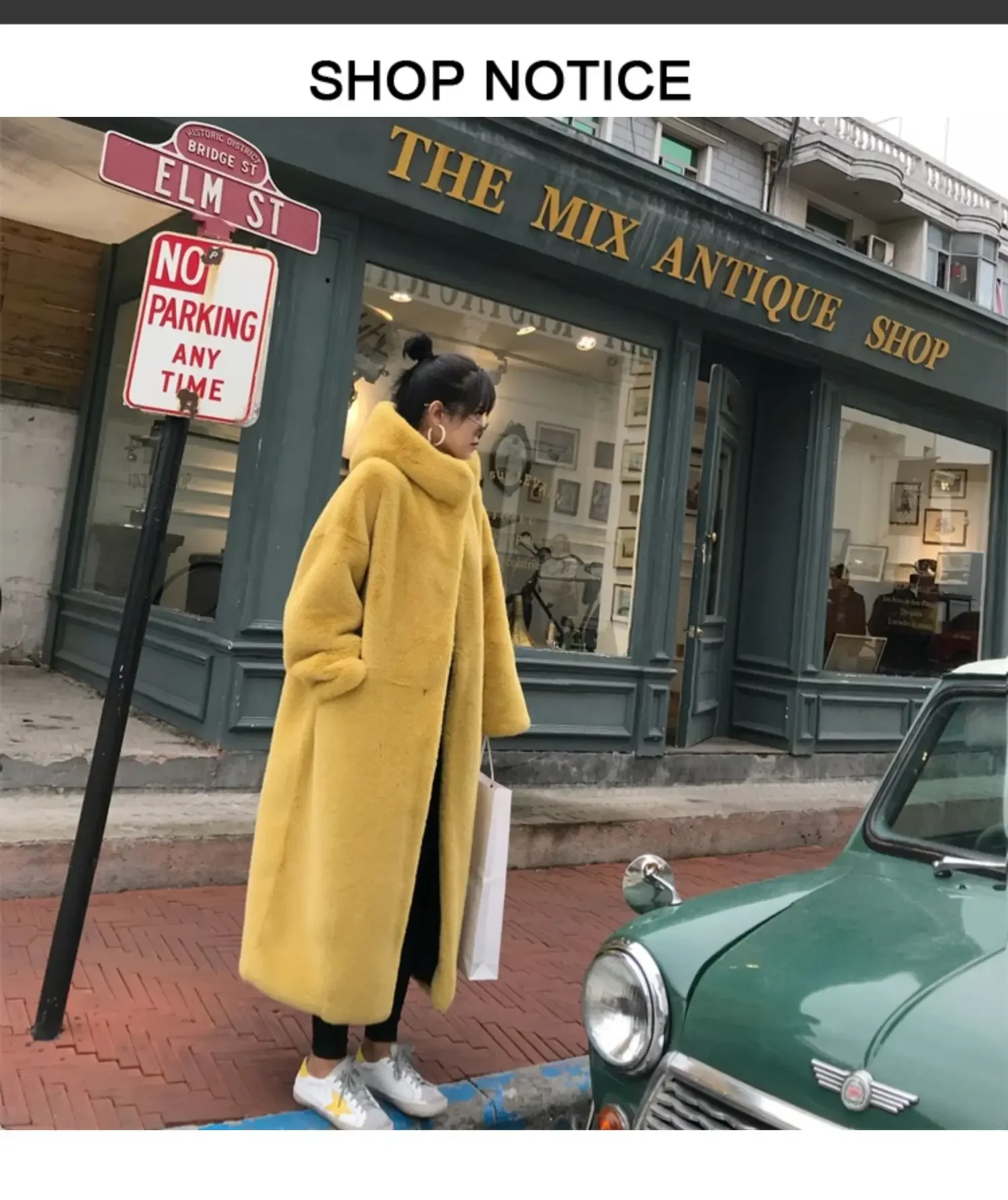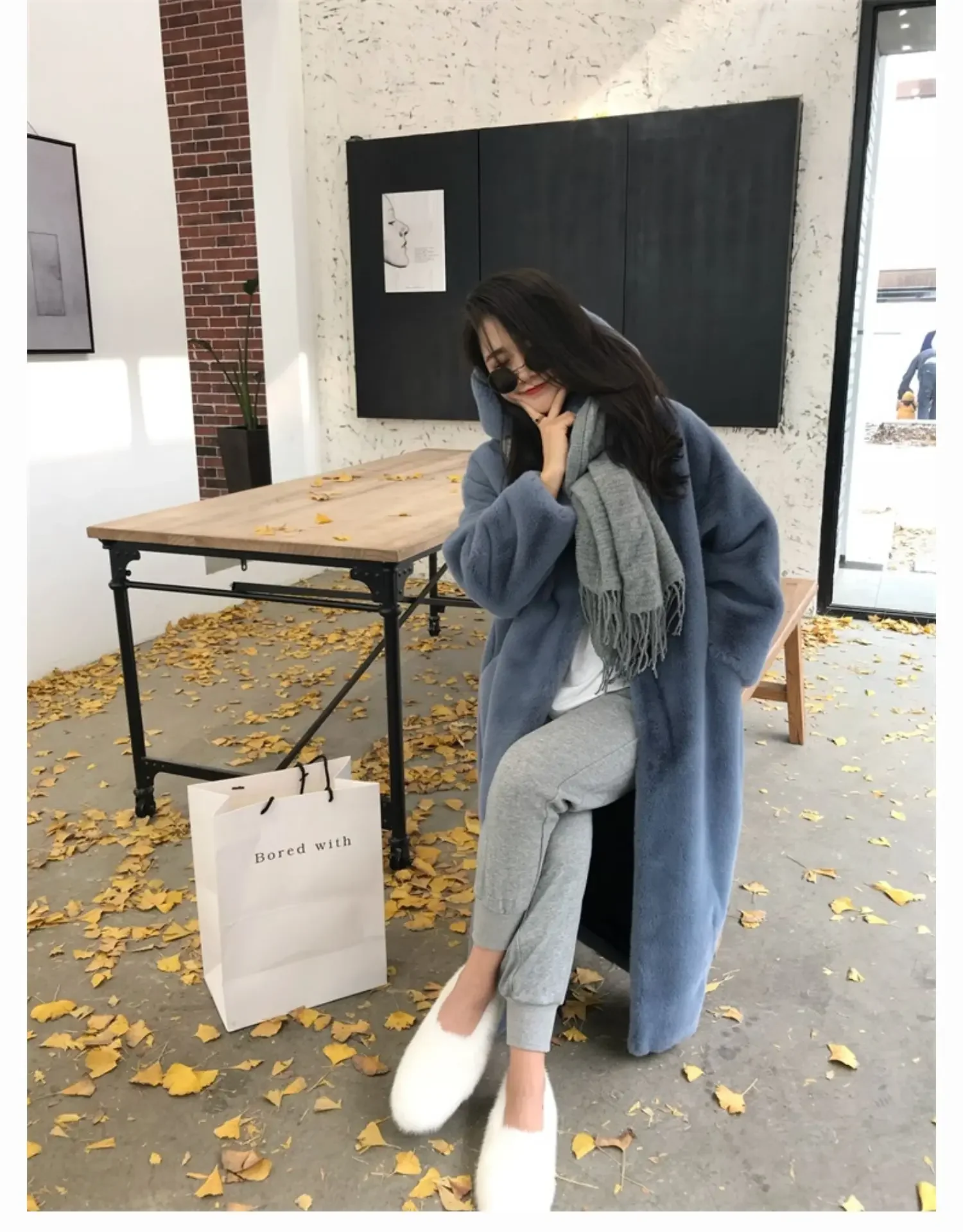 Autumn And Winter New Korean Lmitation Mink Velvet Fur Thickened Loose Plush Hat Long Coat Women