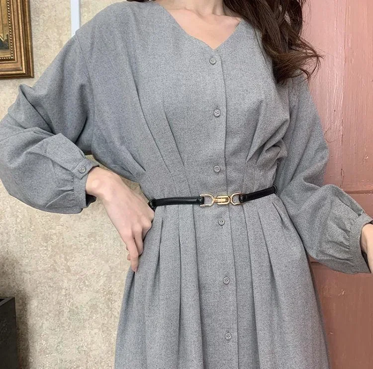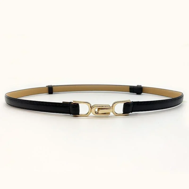 Autumn and Winter Women Fashion Gold Buckle Stretch Belt Thin Metal Buckle Retro Belts Jeans Dress Waistband Waist Belt Gifts