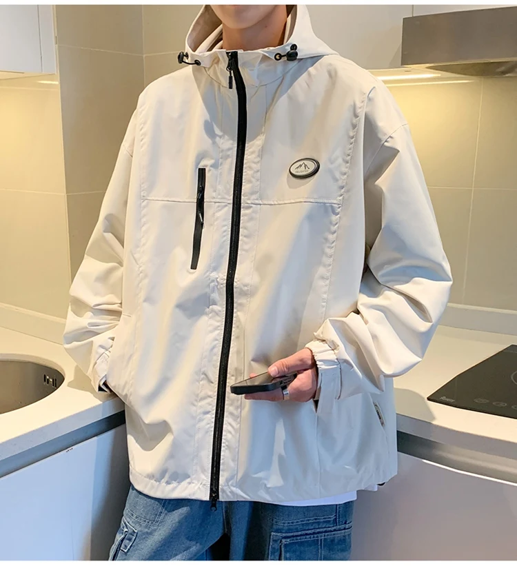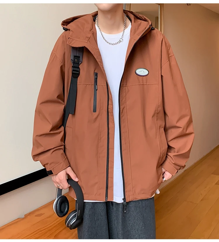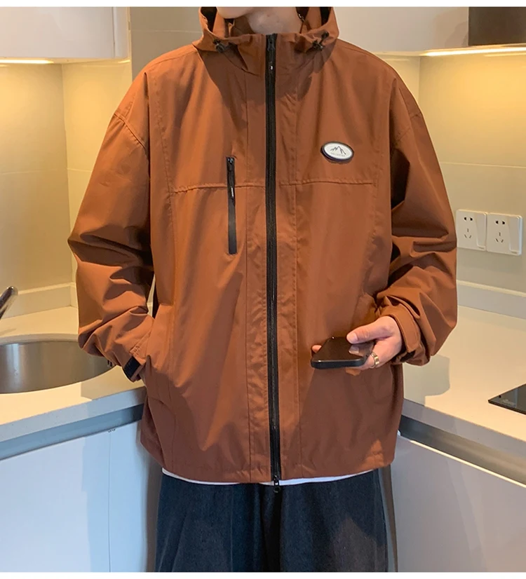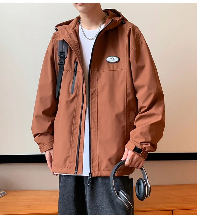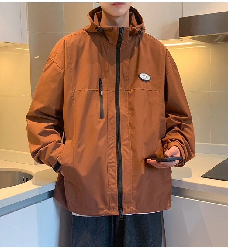 Autumn Men’s Windbreaker Korean Version Fashionable Versatile Outdoor Casual Sports Coat Solid Color Chest Zipper Design Jacket