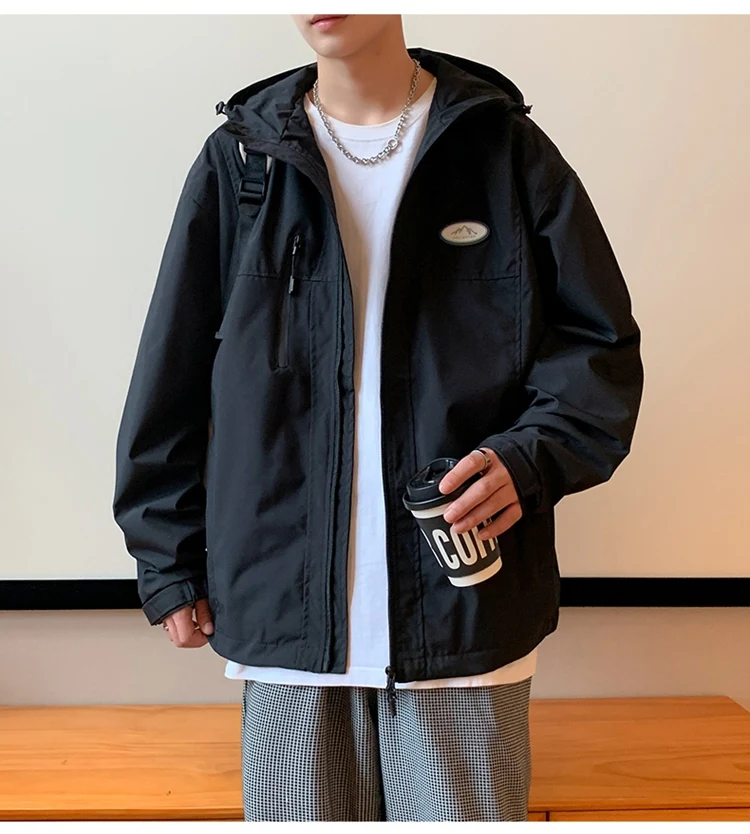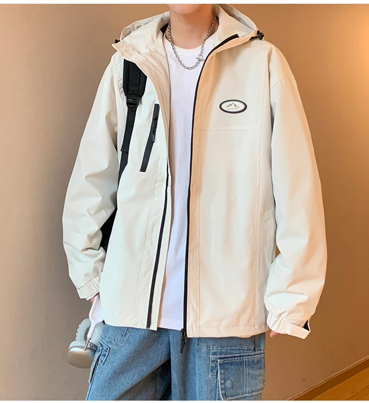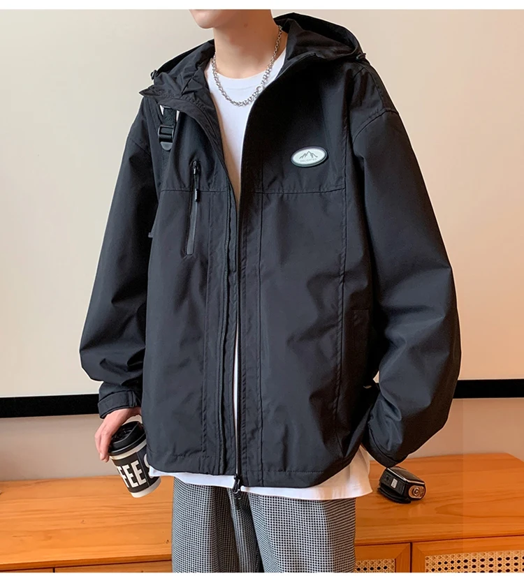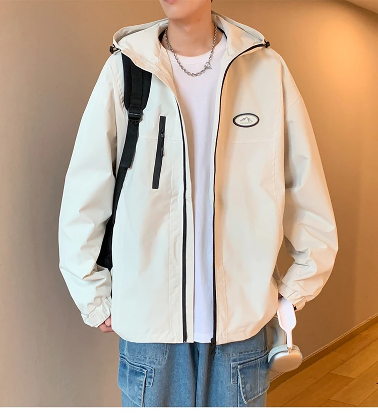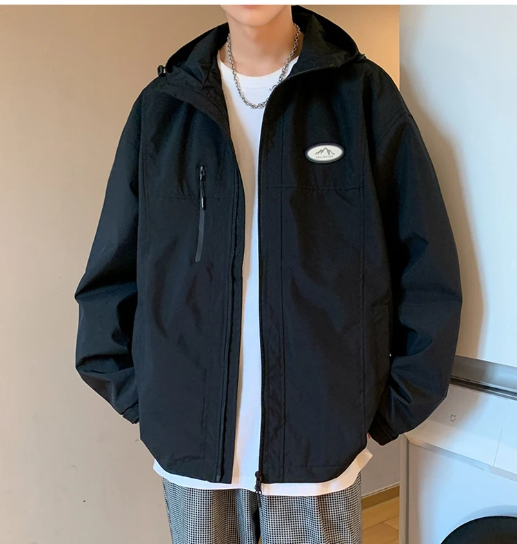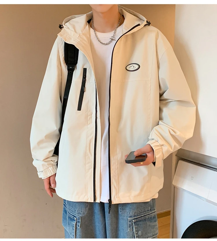 Autumn Men’s Windbreaker Korean Version Fashionable Versatile Outdoor Casual Sports Coat Solid Color Chest Zipper Design Jacket