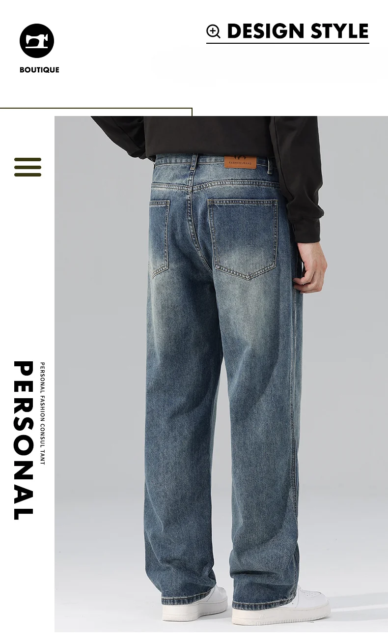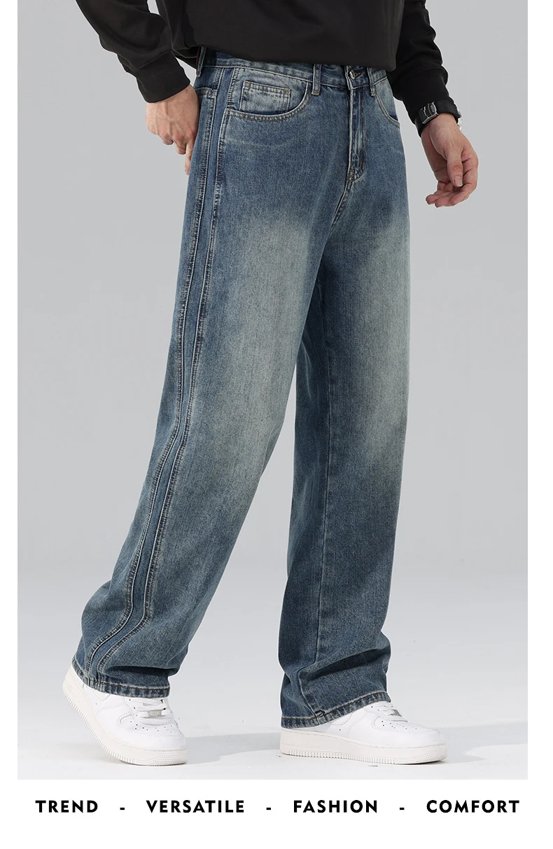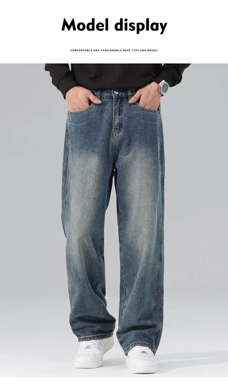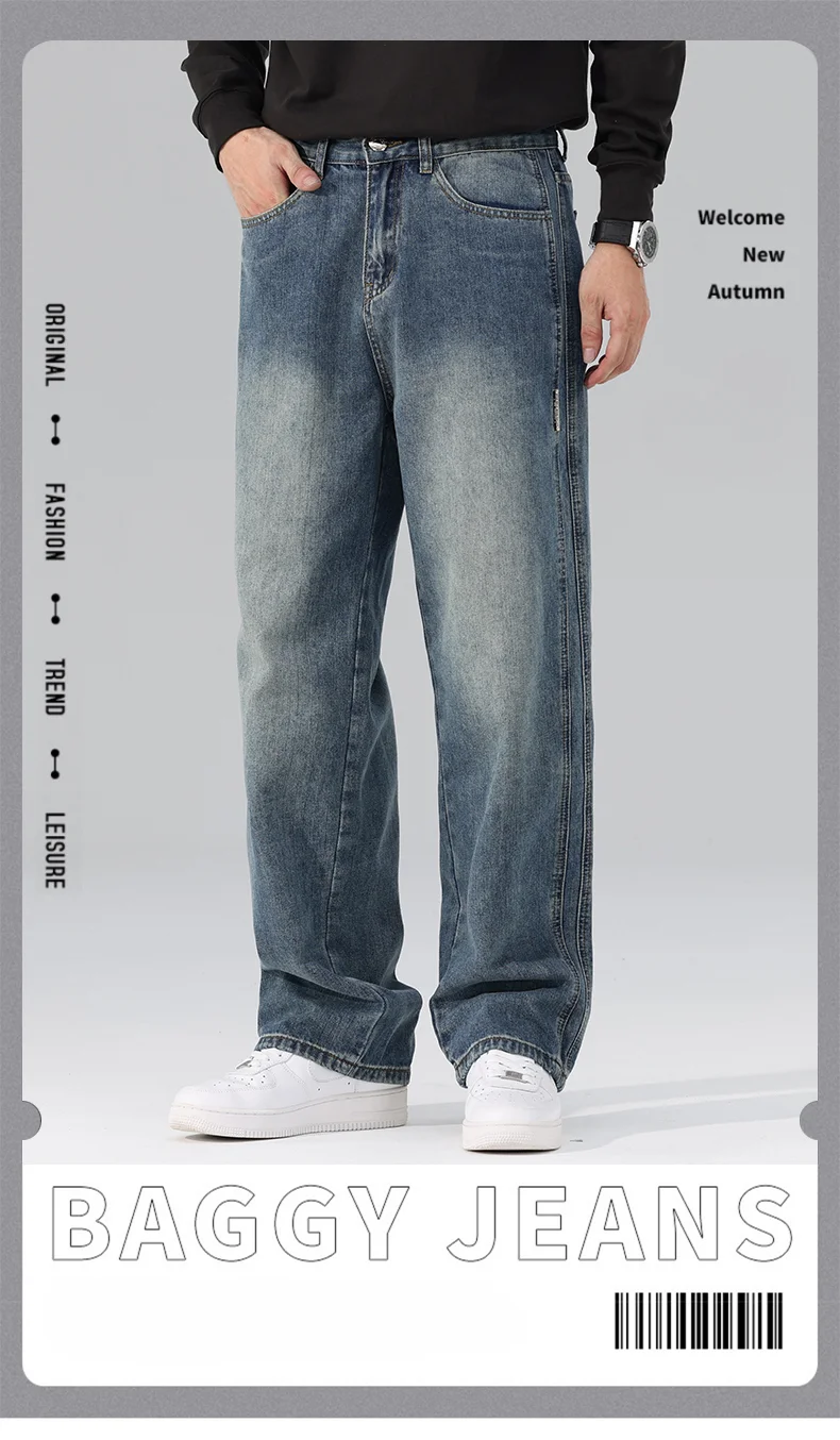 Autumn New Baggy Jeans Men’s Straight Casual Vintage Streetwear Trousers Male Brand Fashion Elasticity Denim Pants