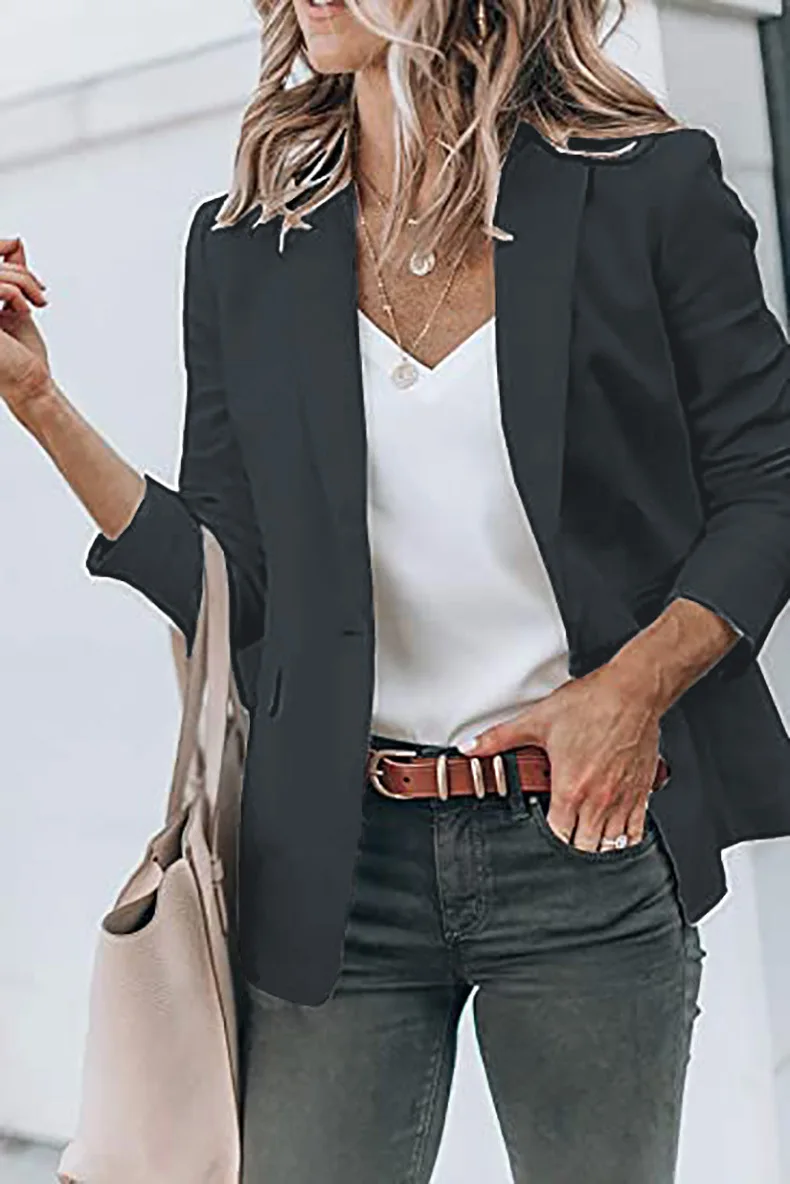 Autumn New Temperament Coat Women’s Long Sleeve Solid Color Suit Collar Single Breasted Suit Jacket Women Blazers and Jackets