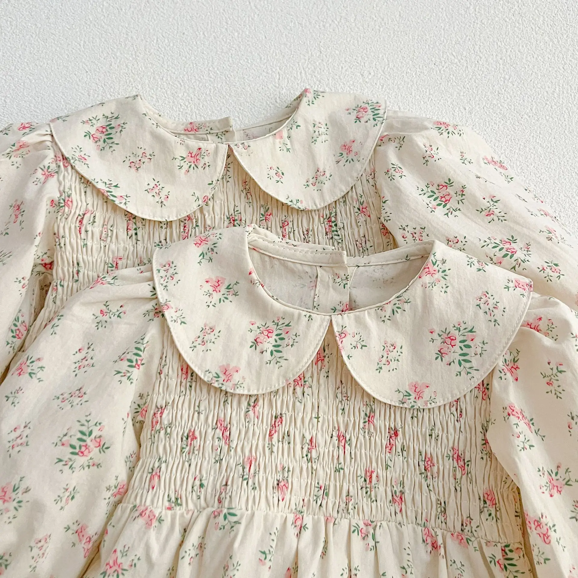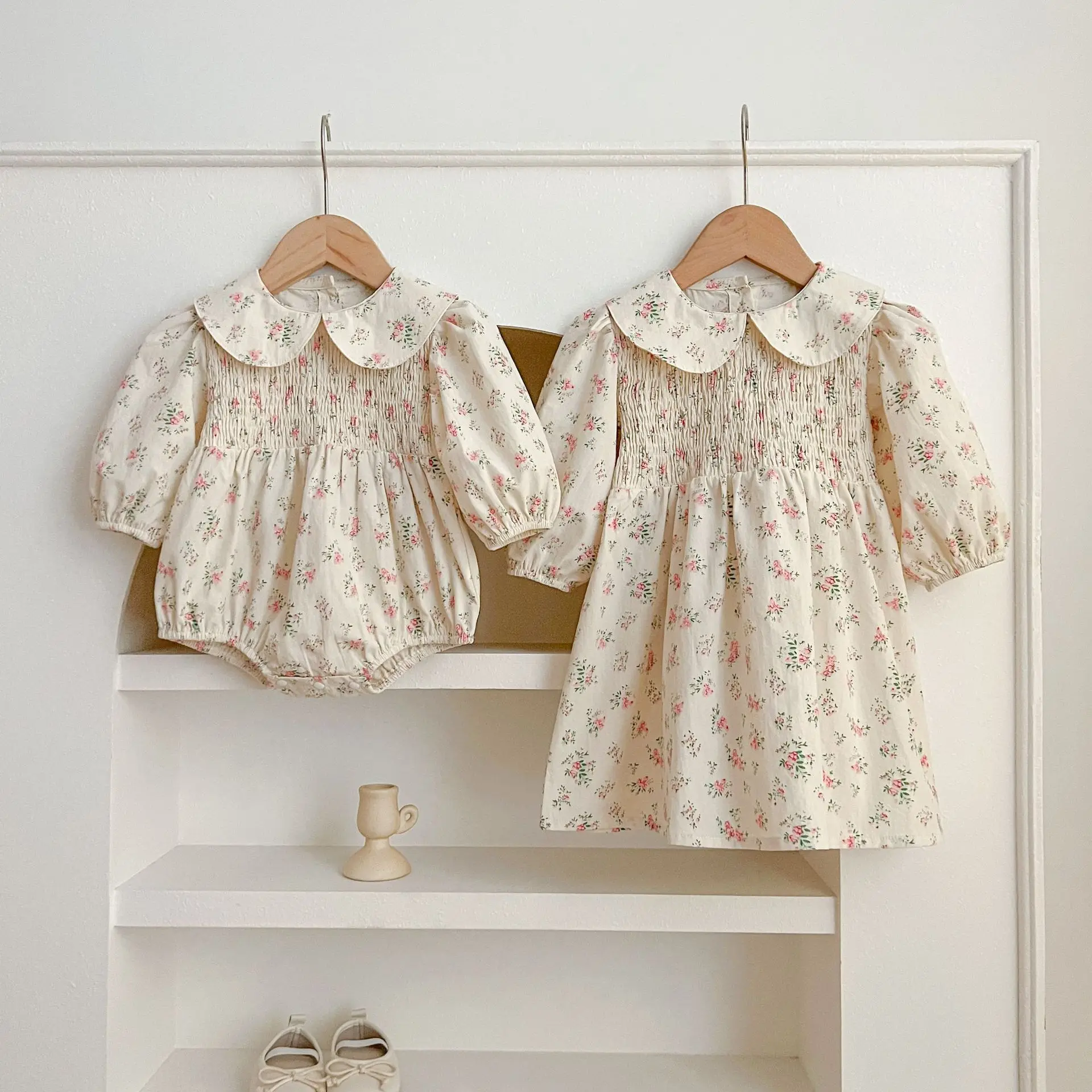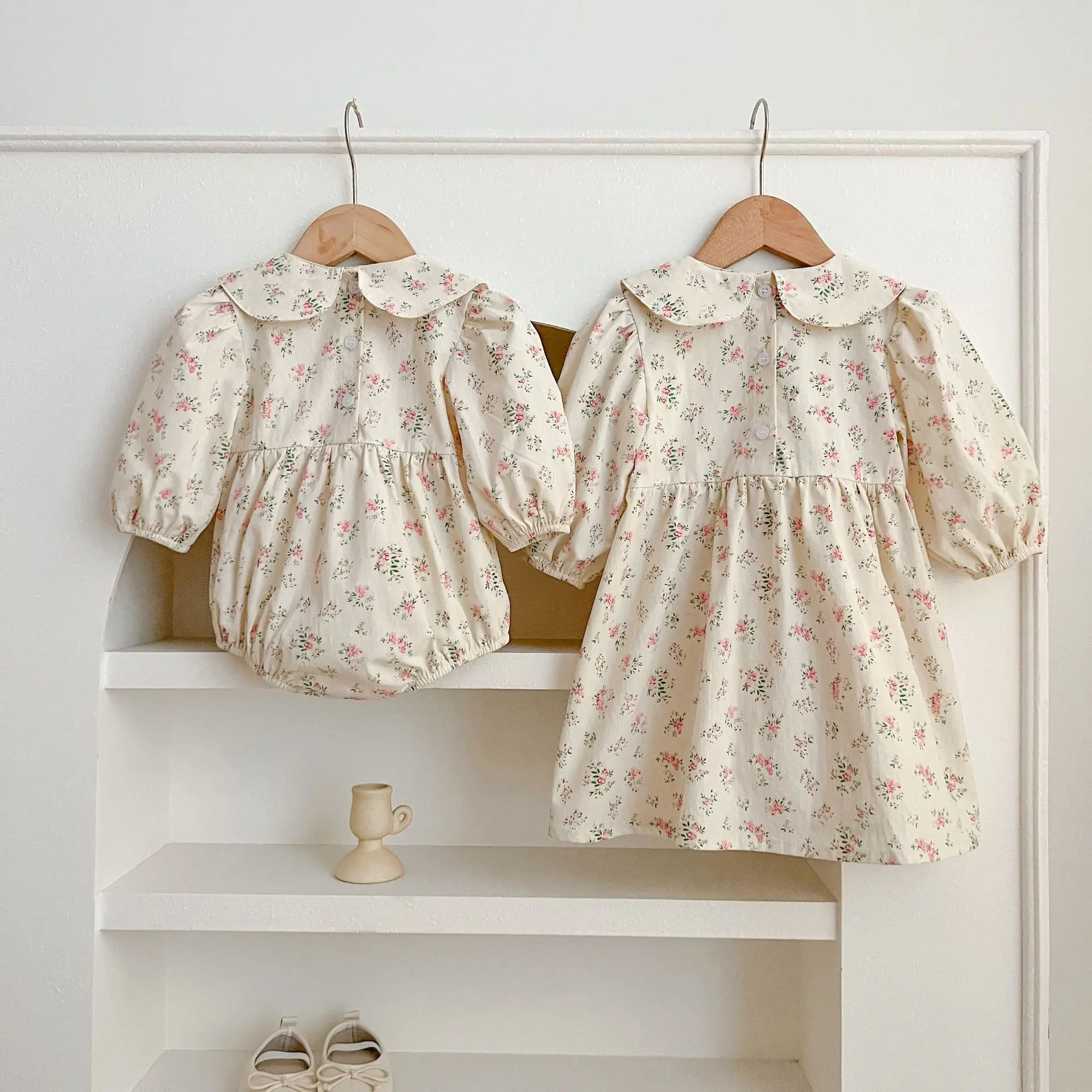 Autumn Sisters Clothes Vintage Floral Embroidery Baby Romper Winter Cotton Infant Bodysuit Princess Girls Sister Family Dress