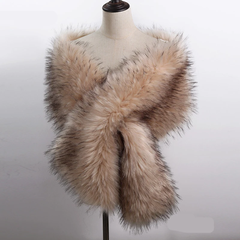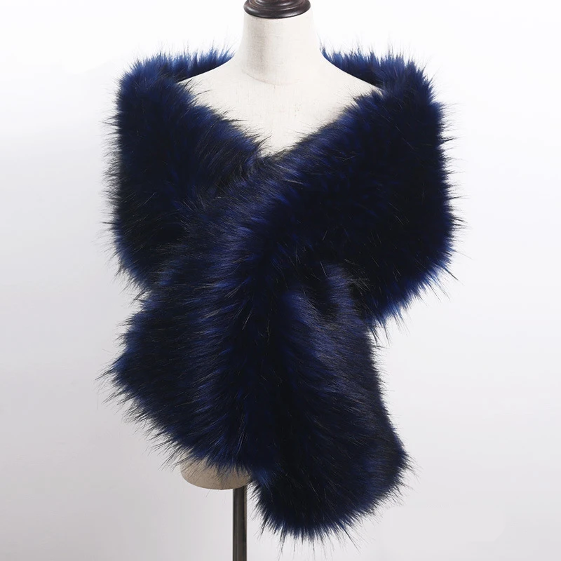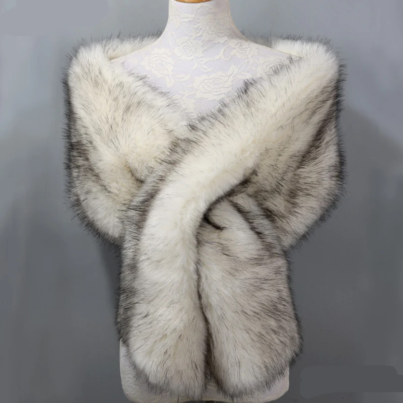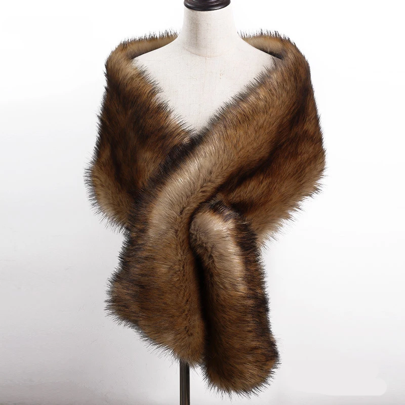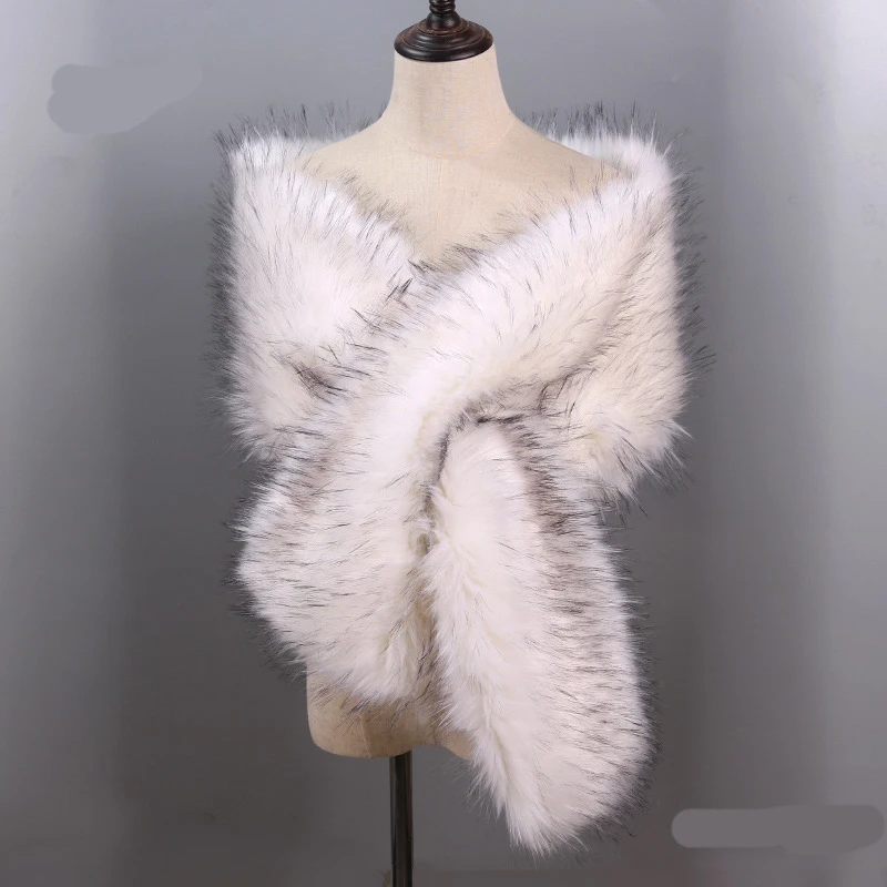 Autumn Winter Luxury Faux Fur Shawl Scarves Ladies Plush Scarf Stole Cover Up For Wedding Party Bridal Fur Shrug Long Wrap Cape