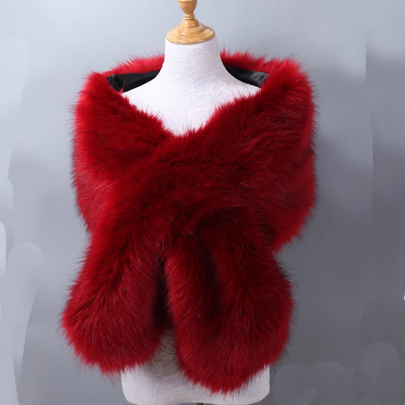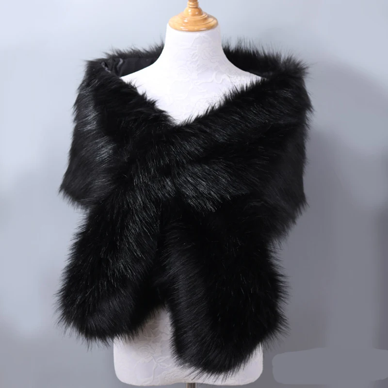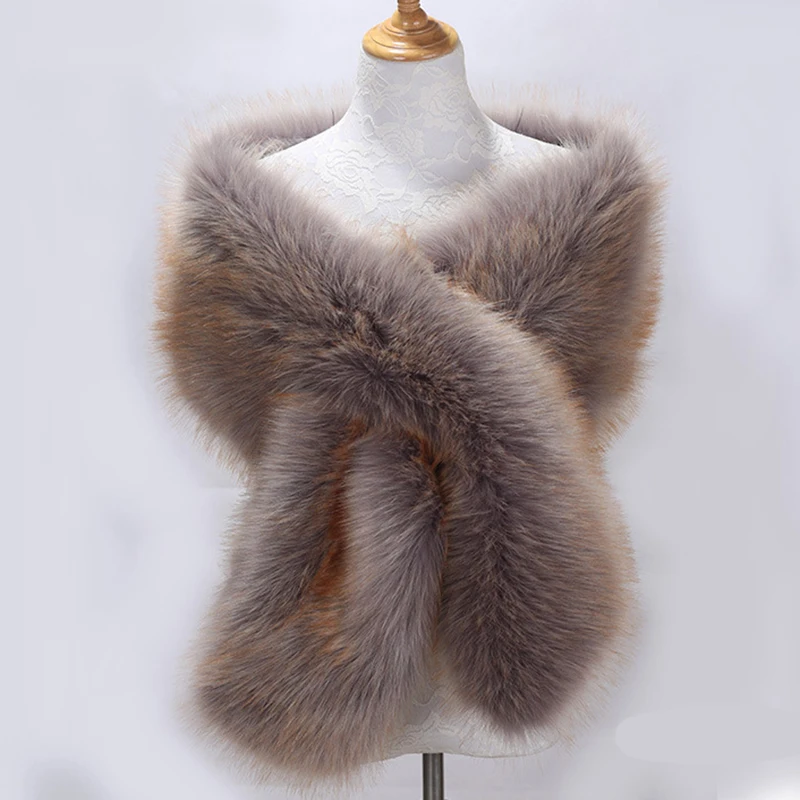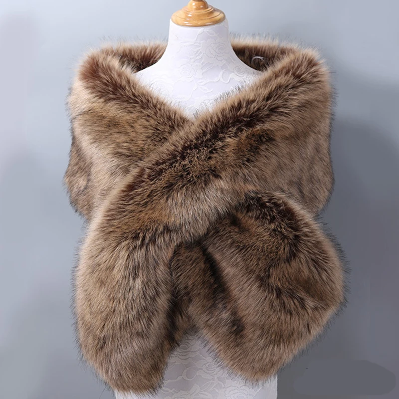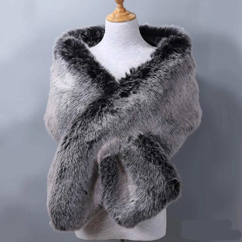 Autumn Winter Luxury Faux Fur Shawl Scarves Ladies Plush Scarf Stole Cover Up For Wedding Party Bridal Fur Shrug Long Wrap Cape
