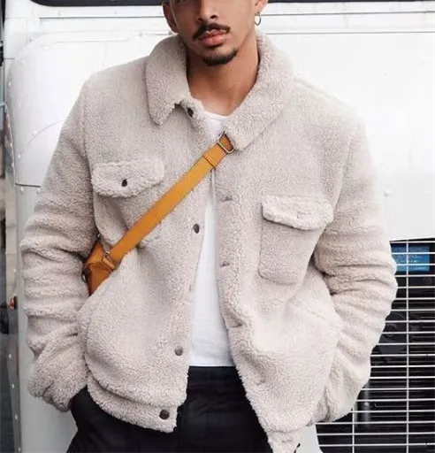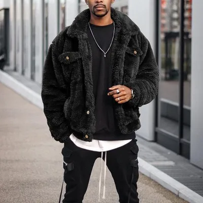 Autumn Winter Men’s Mid-length Style Plush Jacket Fashion Casual Fluffy Warm Coat Male Solid Tops Loose Thermal Jacket Outerwear