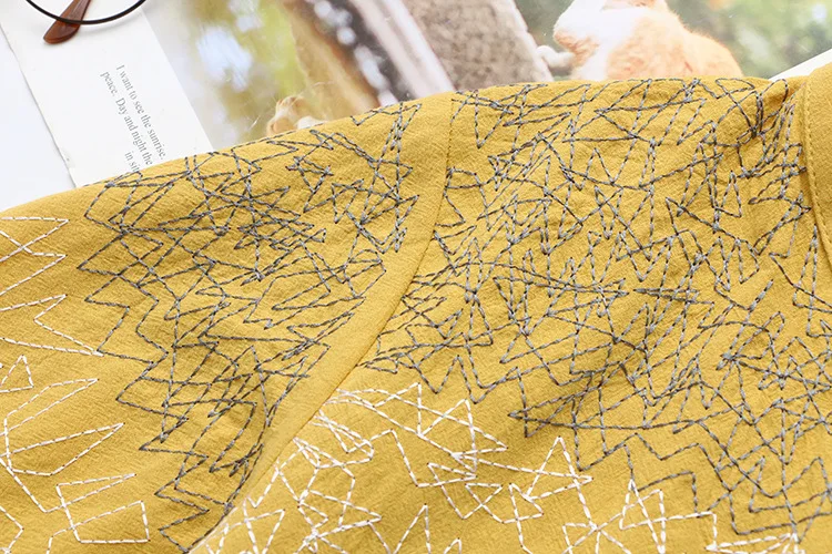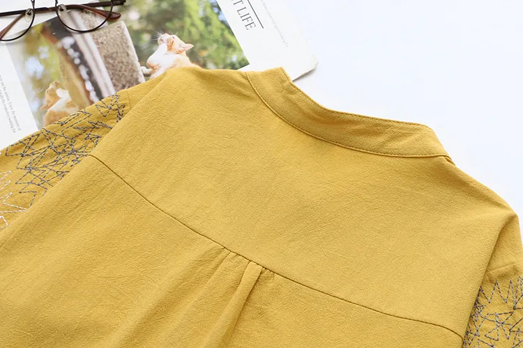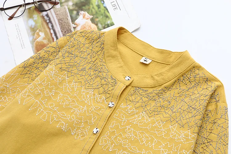 Autumn Women Shirts Ladies Solid Tops Female Long Sleeve Blouses Washed Cotton Embroidery Loose Plus Size Clothing K73 137