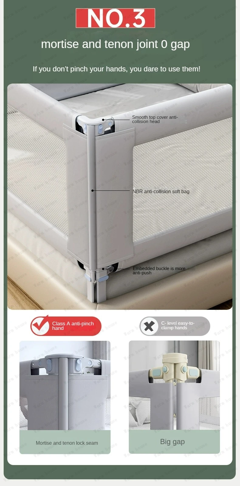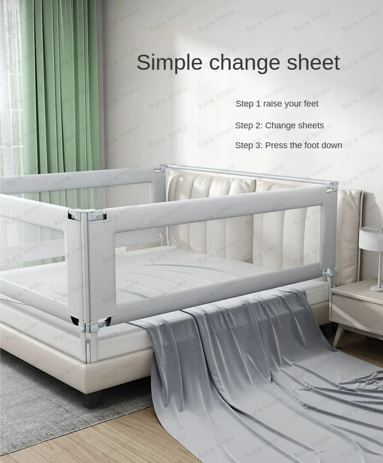 Baby anti-fall bed fence baby guardrail Bedside anti-fall baffle Children’s bed three side guardrails without drilling
