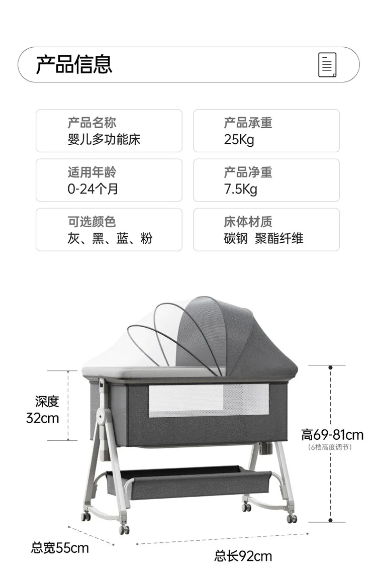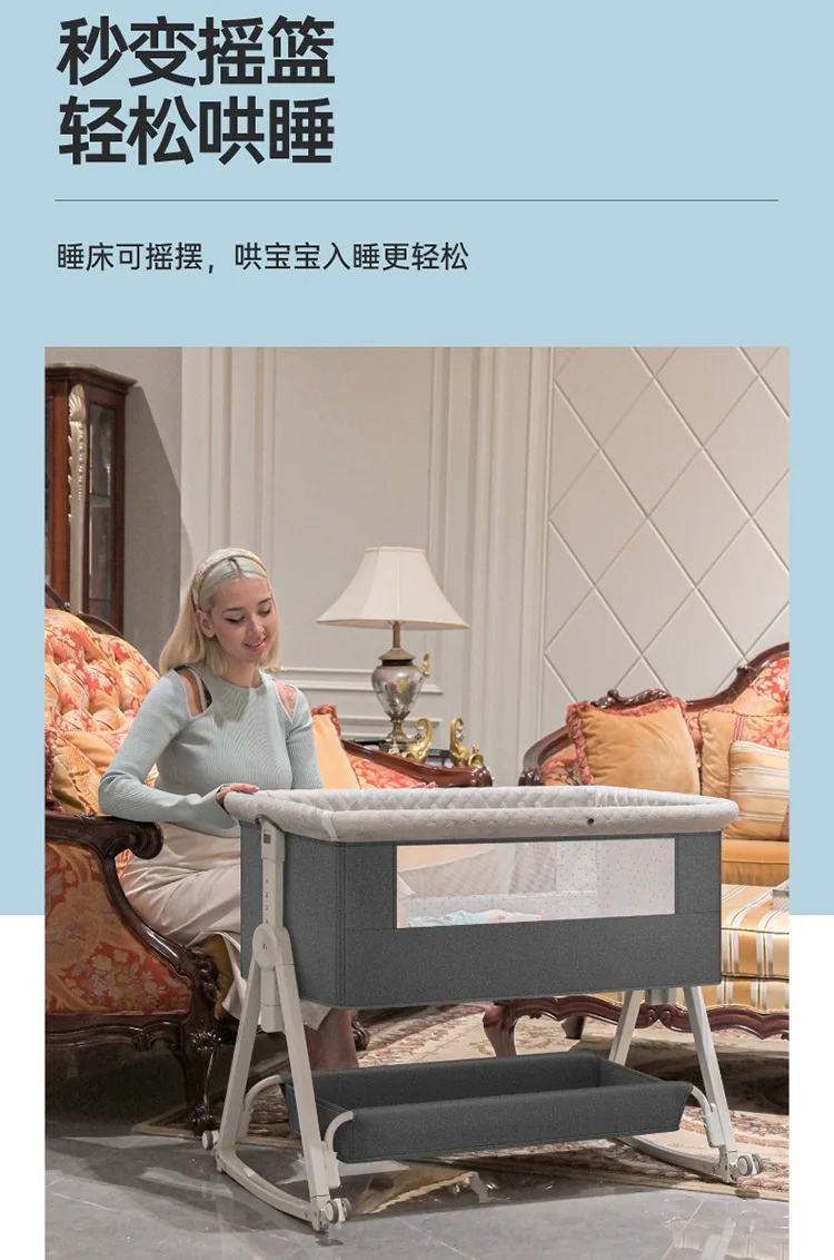Baby Bed Crib Portable Bassinet Bedside Liftable Cradle Bed Playpen NewbornWith Changing Table Storage Bag Mosquito Net