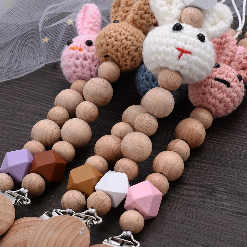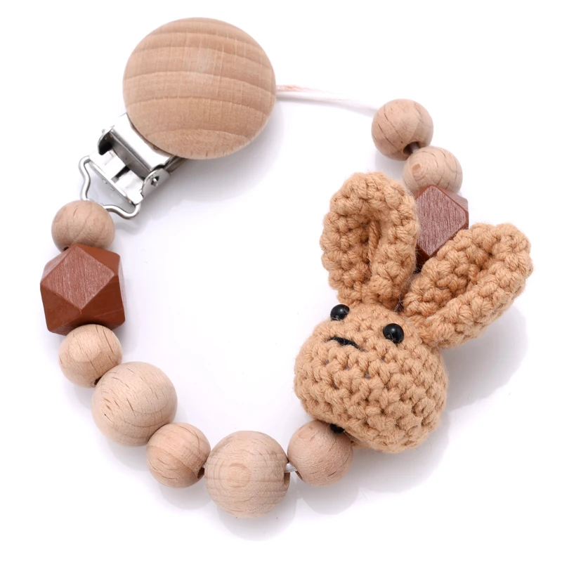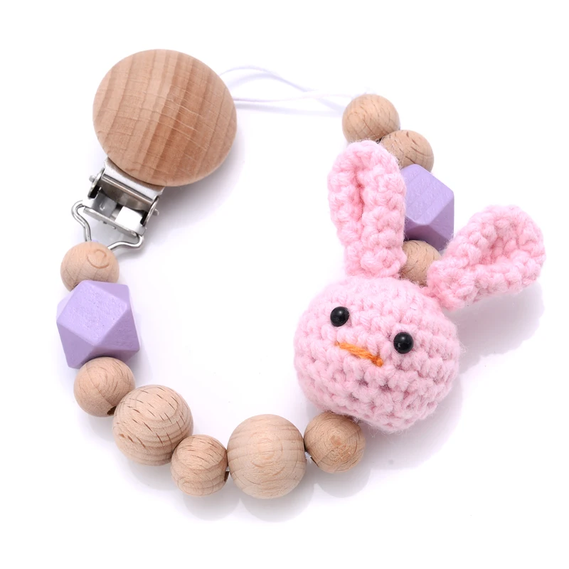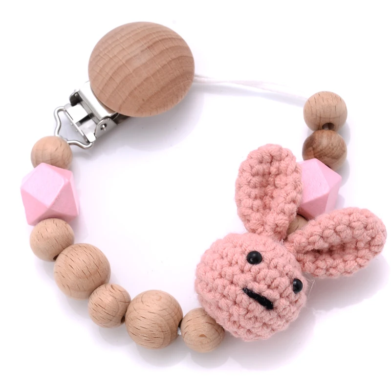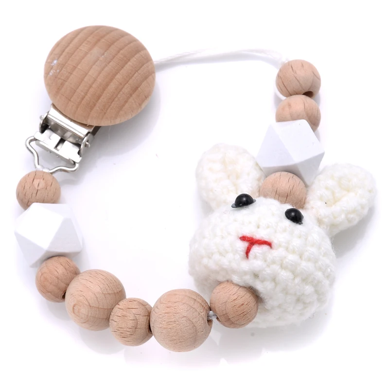 Baby Beech Teether Pacifier Chain Cartoon Animal Handmade Wood Teether Chain Baby Pacifier Clips Nipple Clip Teething Chew Toys