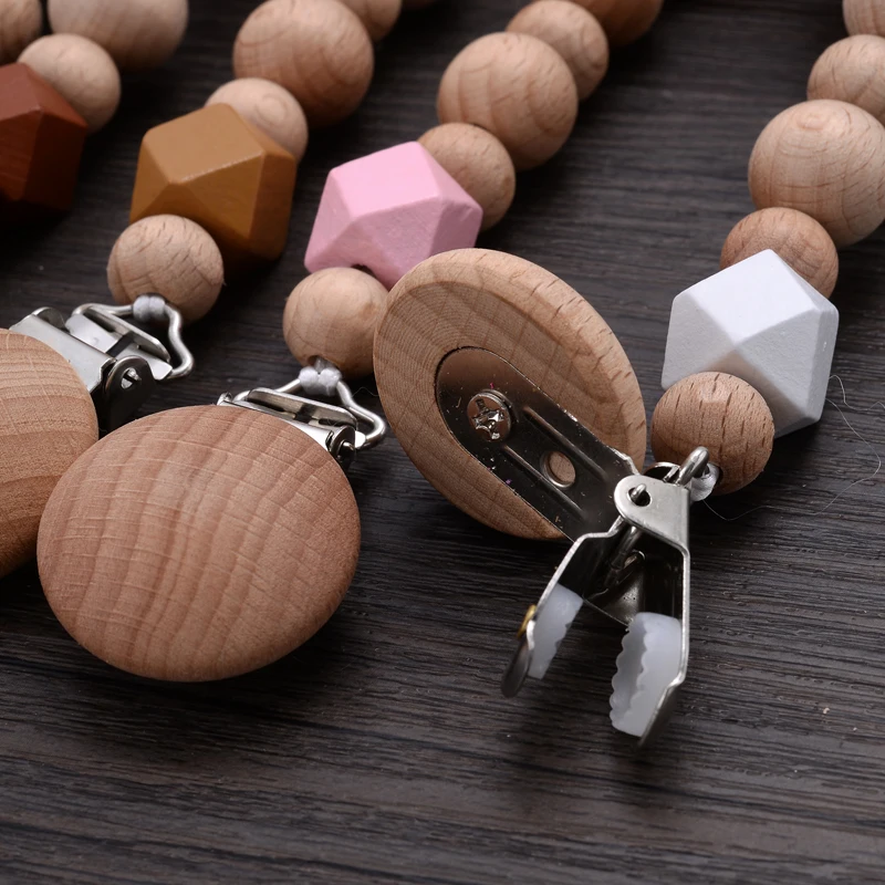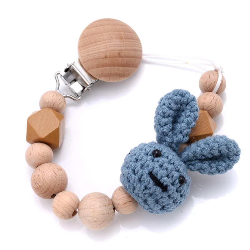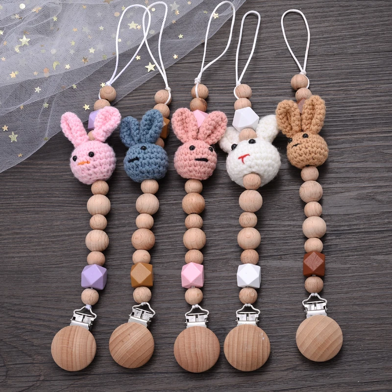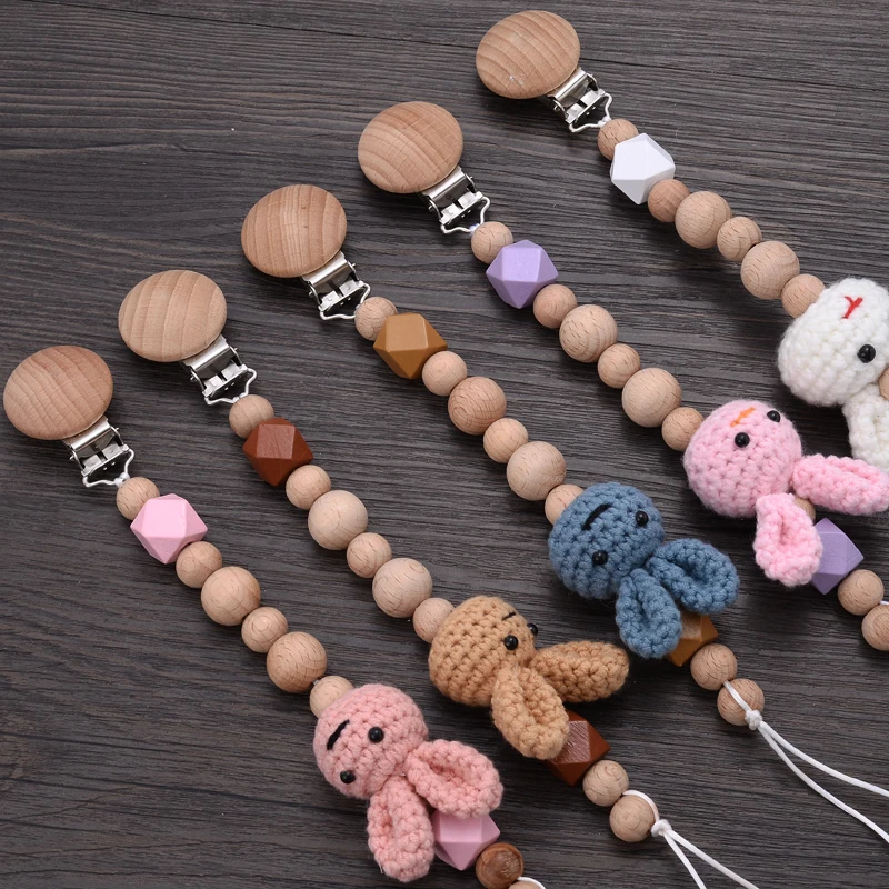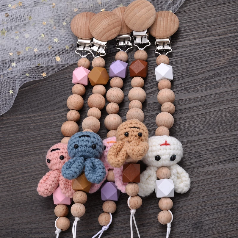 Baby Beech Teether Pacifier Chain Cartoon Animal Handmade Wood Teether Chain Baby Pacifier Clips Nipple Clip Teething Chew Toys