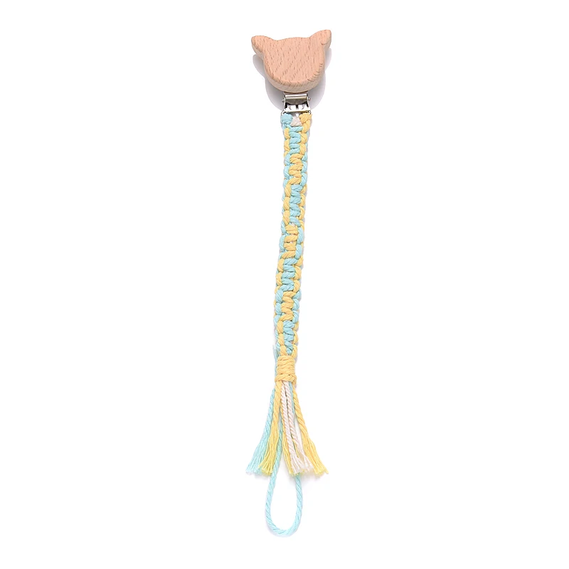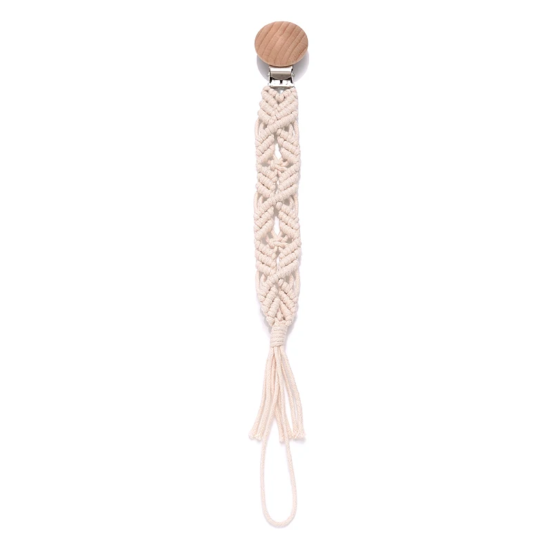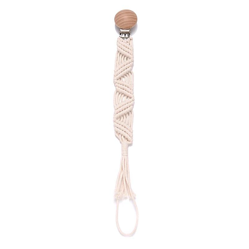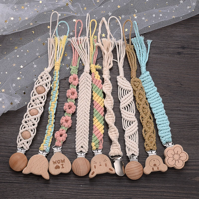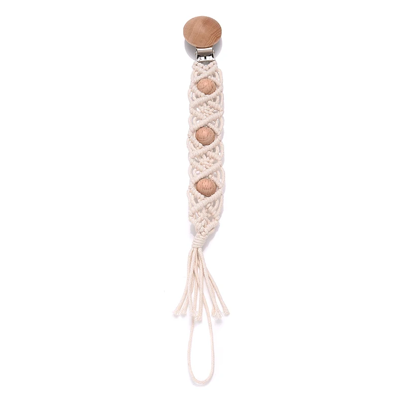 Baby Beech Wood Pacifier Clip Handmade Crochet Cotton Rope Nipple Chain For Baby Nursing Chew Toy Shower Gift Soother Chain