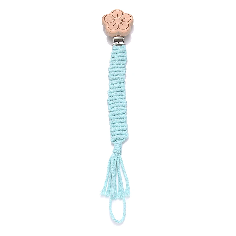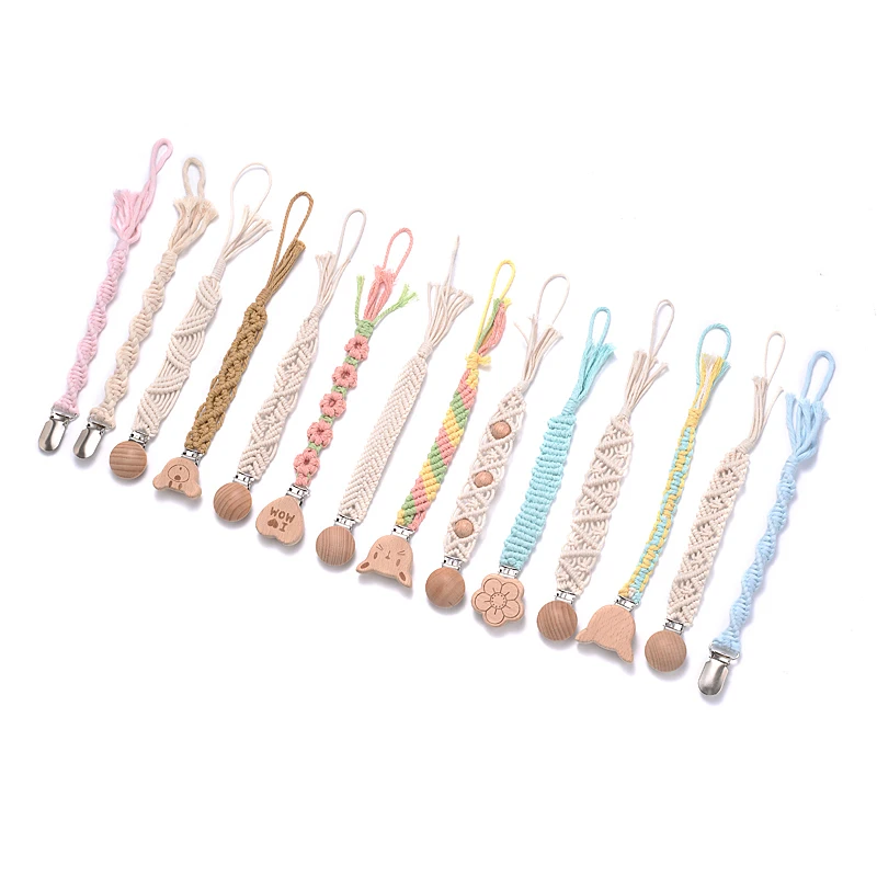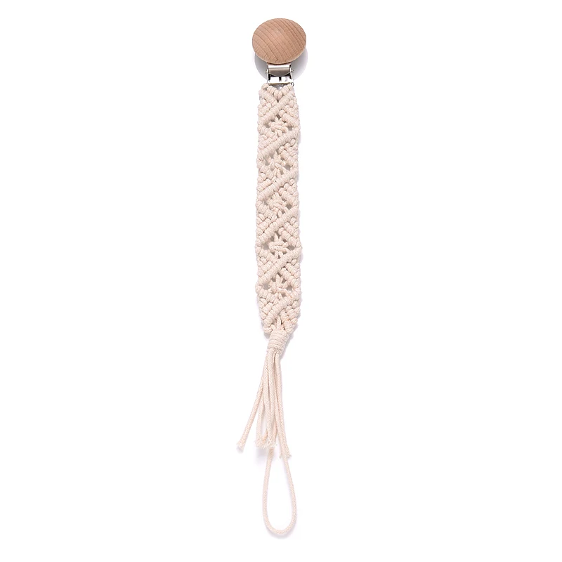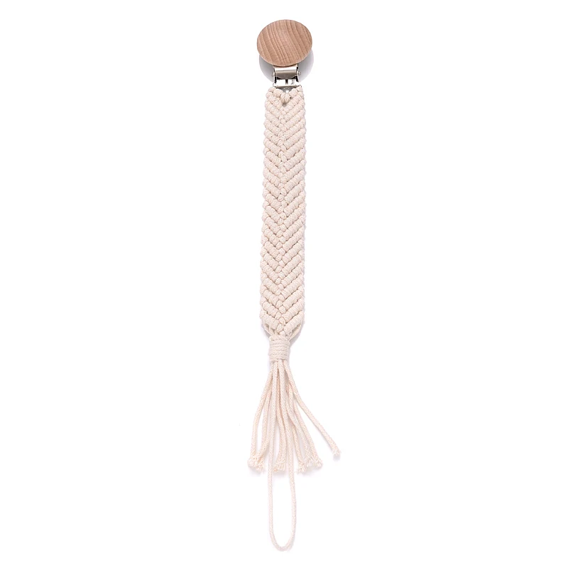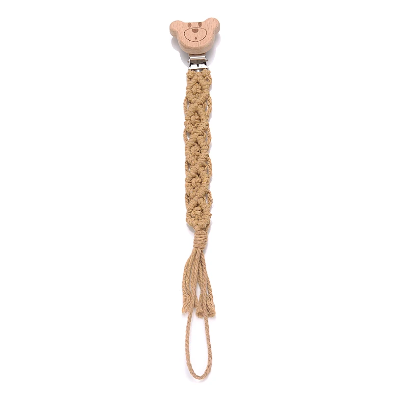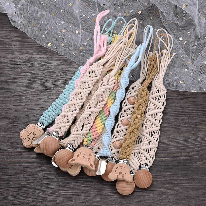 Baby Beech Wood Pacifier Clip Handmade Crochet Cotton Rope Nipple Chain For Baby Nursing Chew Toy Shower Gift Soother Chain