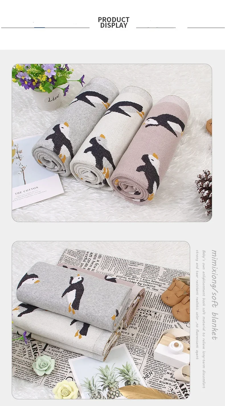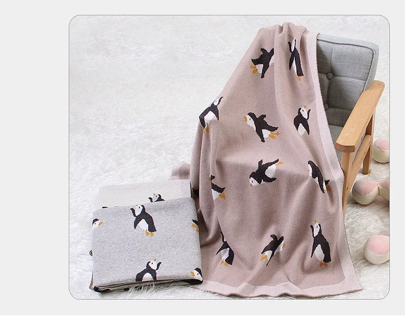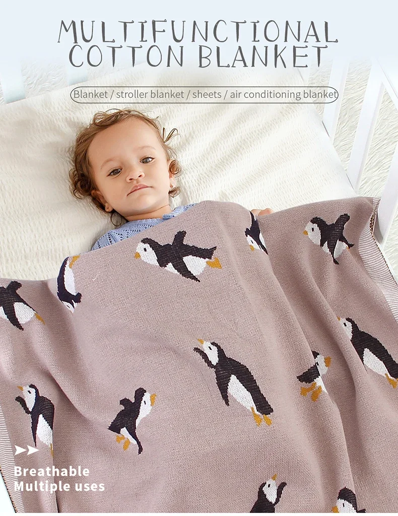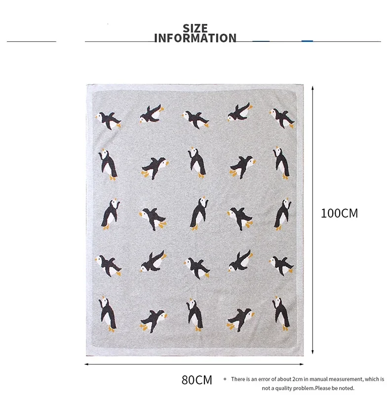 Baby Blanket Cotton Knit Newborn Infant Bedding Crib Penguin Quilt 100*80CM Toddler Girl Boy Stroller Swaddling Super Soft Plaid