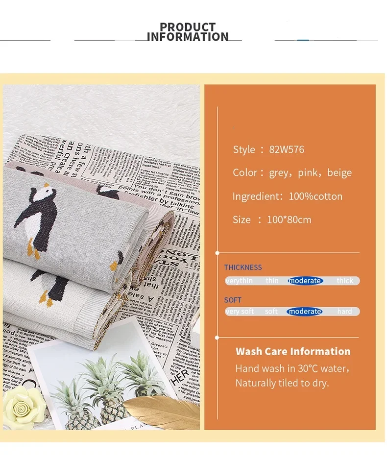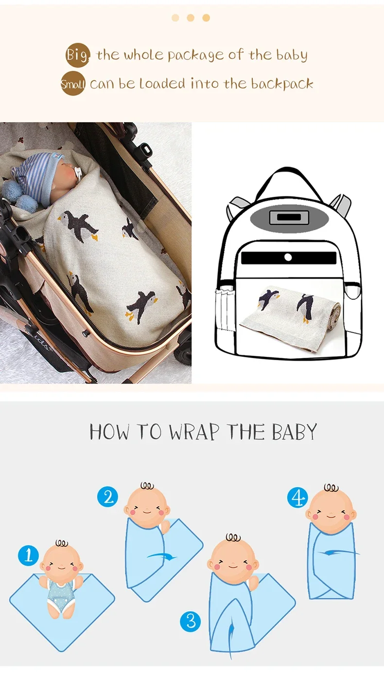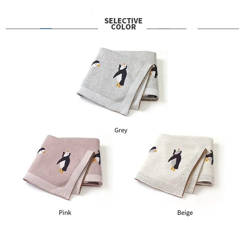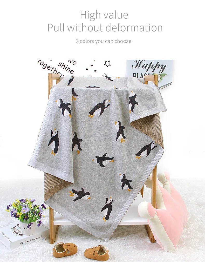 Baby Blanket Cotton Knit Newborn Infant Bedding Crib Penguin Quilt 100*80CM Toddler Girl Boy Stroller Swaddling Super Soft Plaid