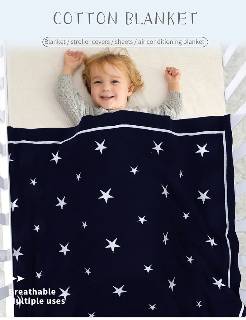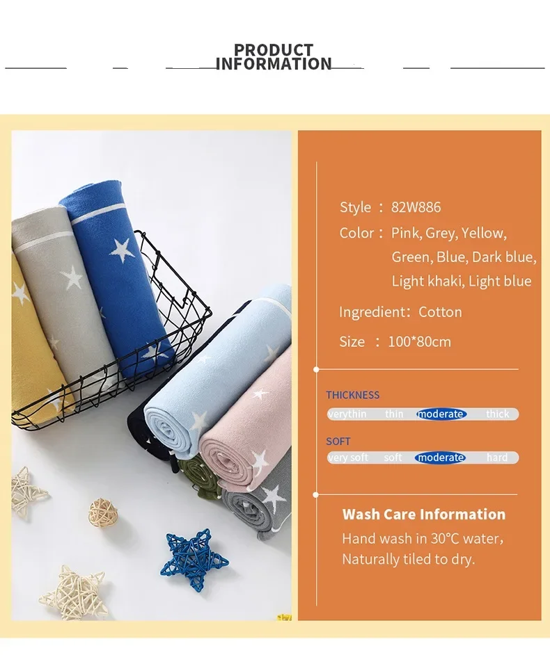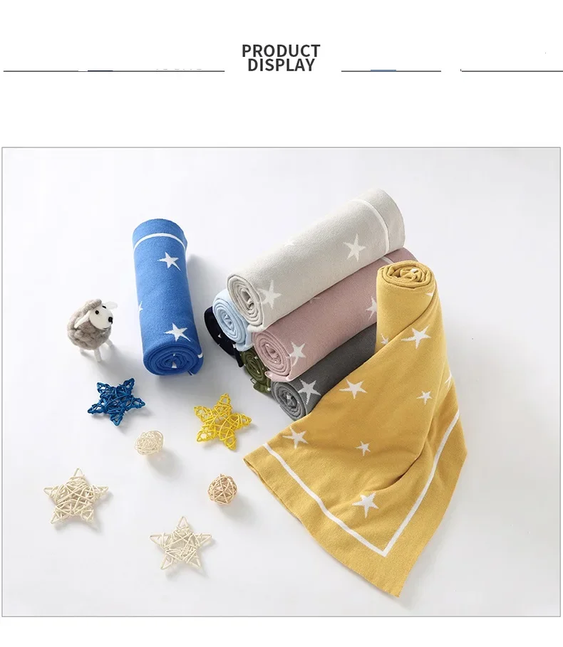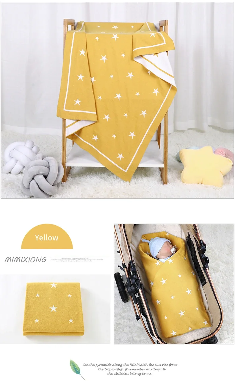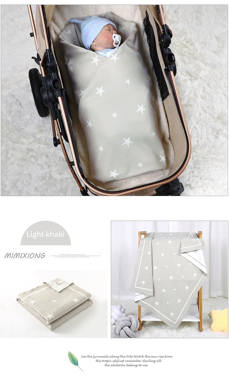 Baby Blanket Cotton Plaid Knit Infant Stroller Warp Swaddling 100*80 CM Newborn Girl Boy Bed Crib Soft Five-pointed Star Quilts