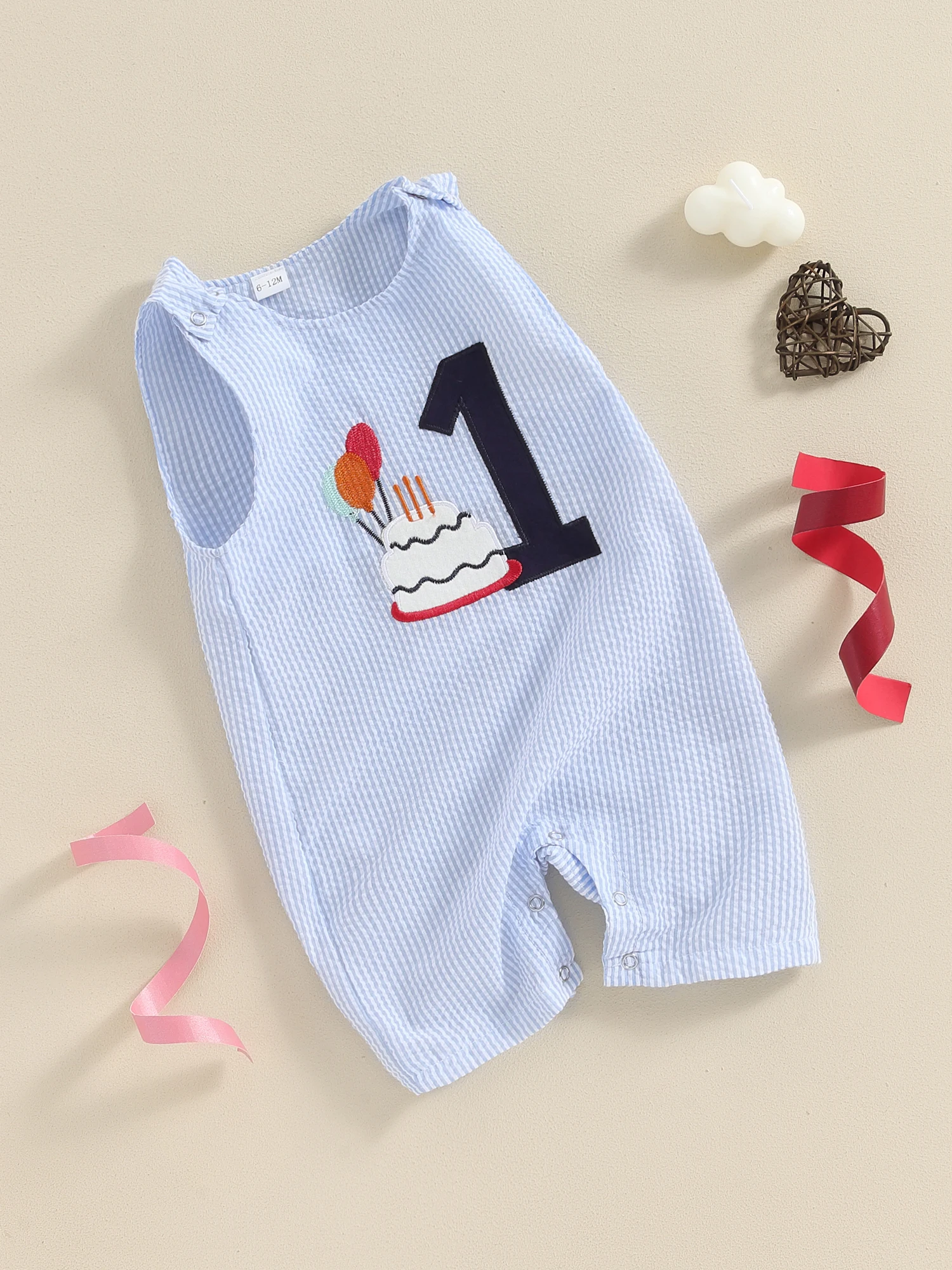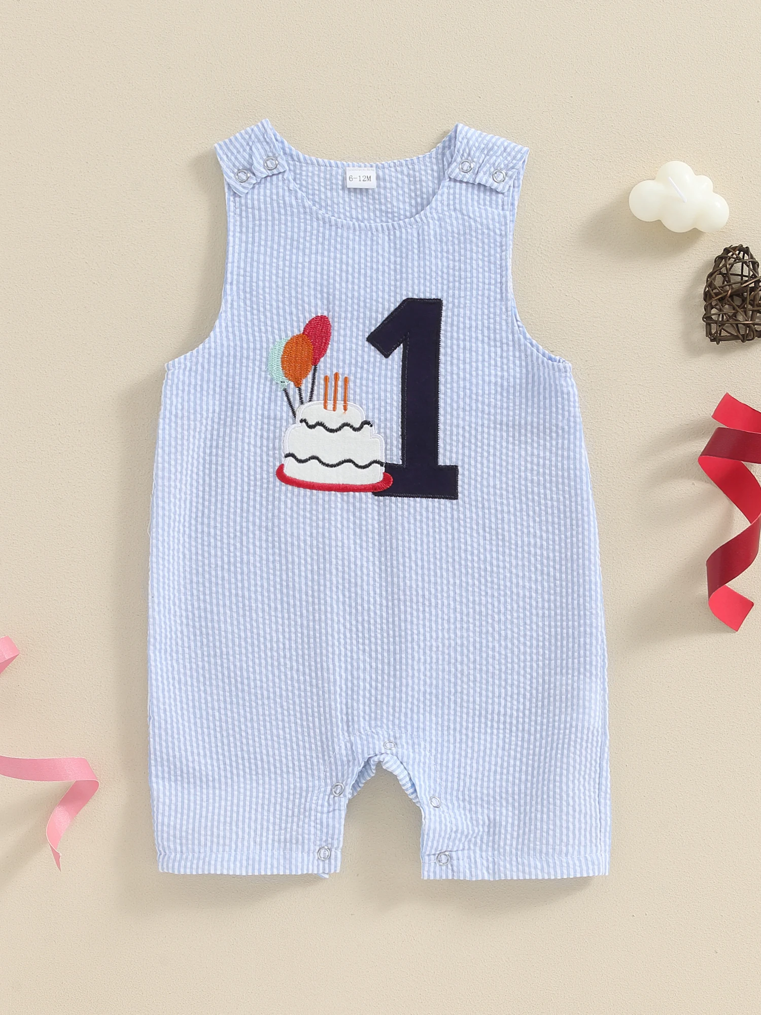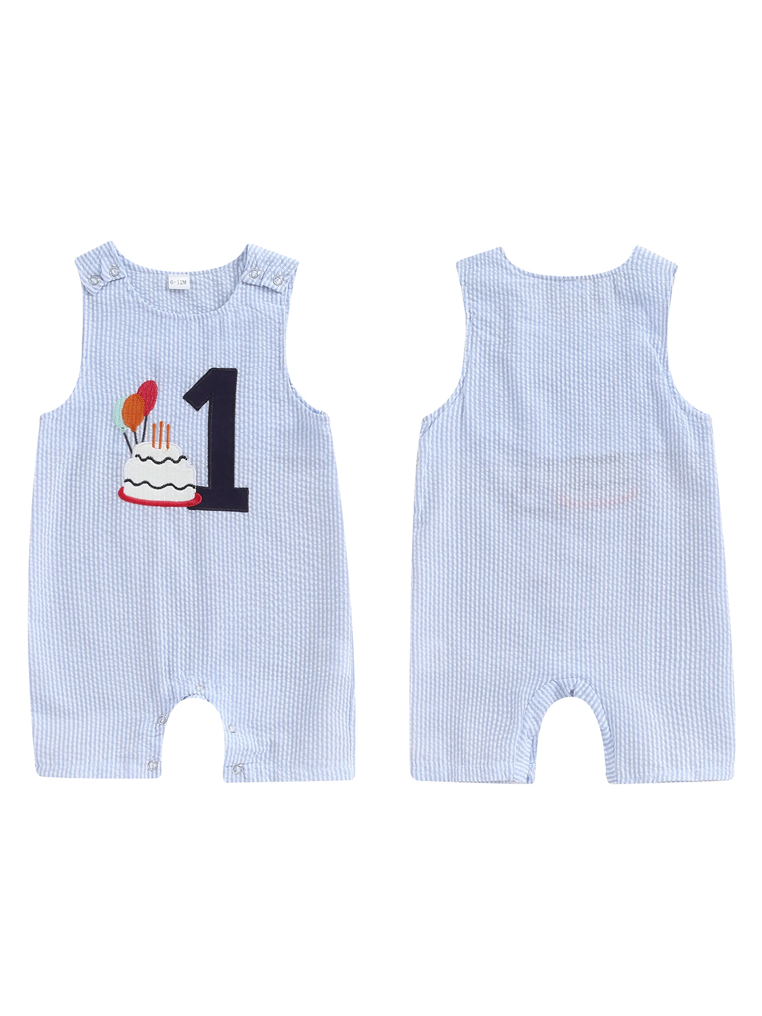Baby Boy Overalls, Embroidery Cake Striped Jumpsuit Birthday Clothes for Casual Daily