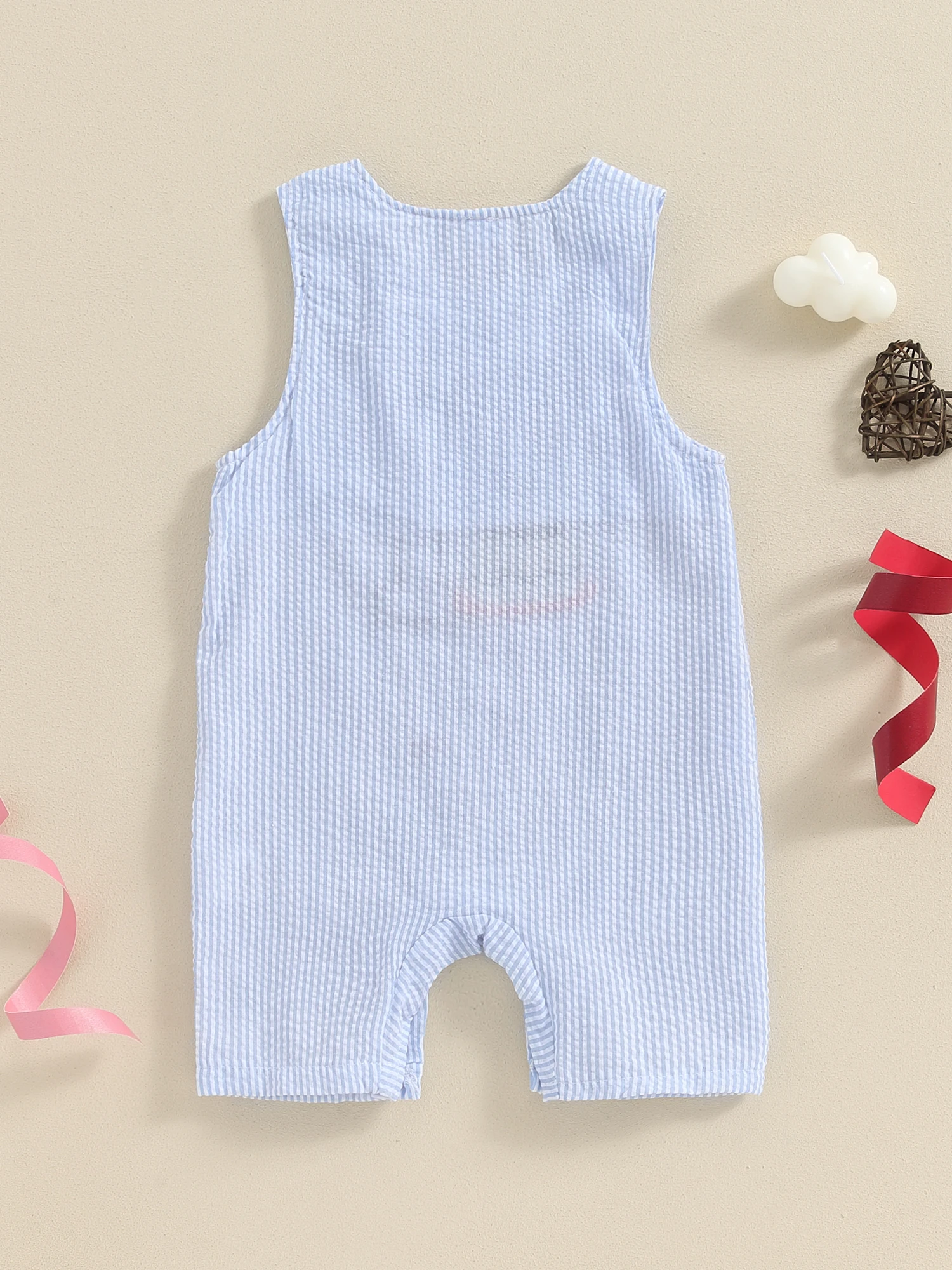 Baby Boy 1st Birthday Outfit One Sleeveless Romper Bodysuit Jumpsuit Stripe Suspender Overalls Summer Clothes