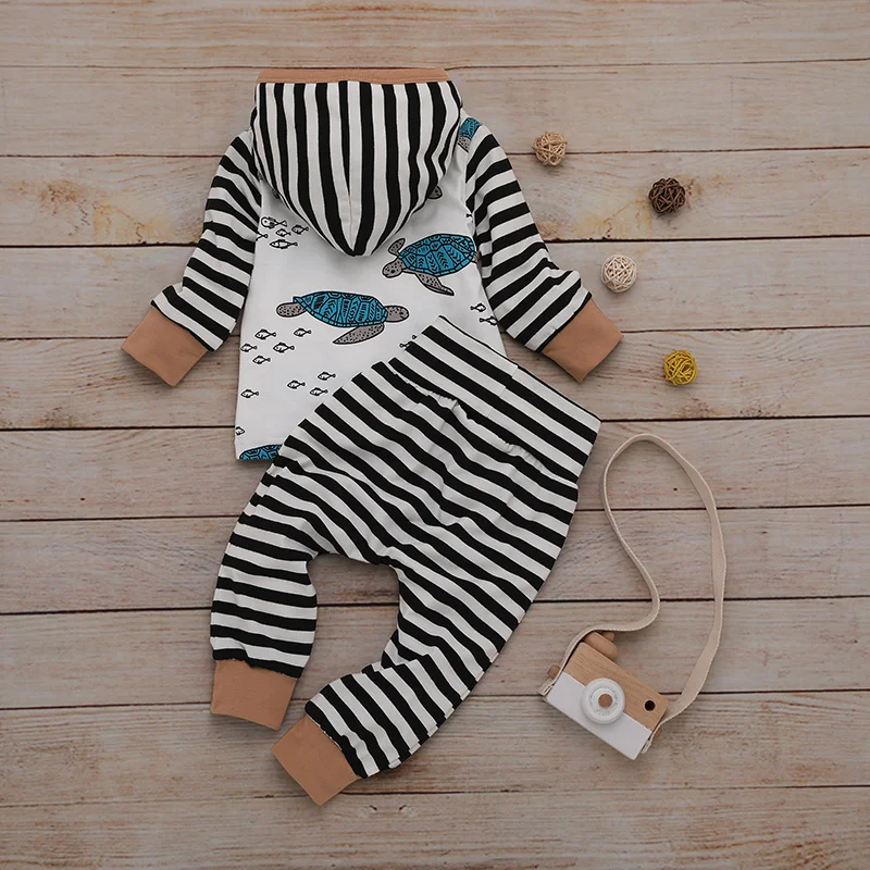 Baby Boys Long Sleeve Cartoon Animal Cotton Hoodie Pantsuits 2pcs For All Seasons Casual Sets