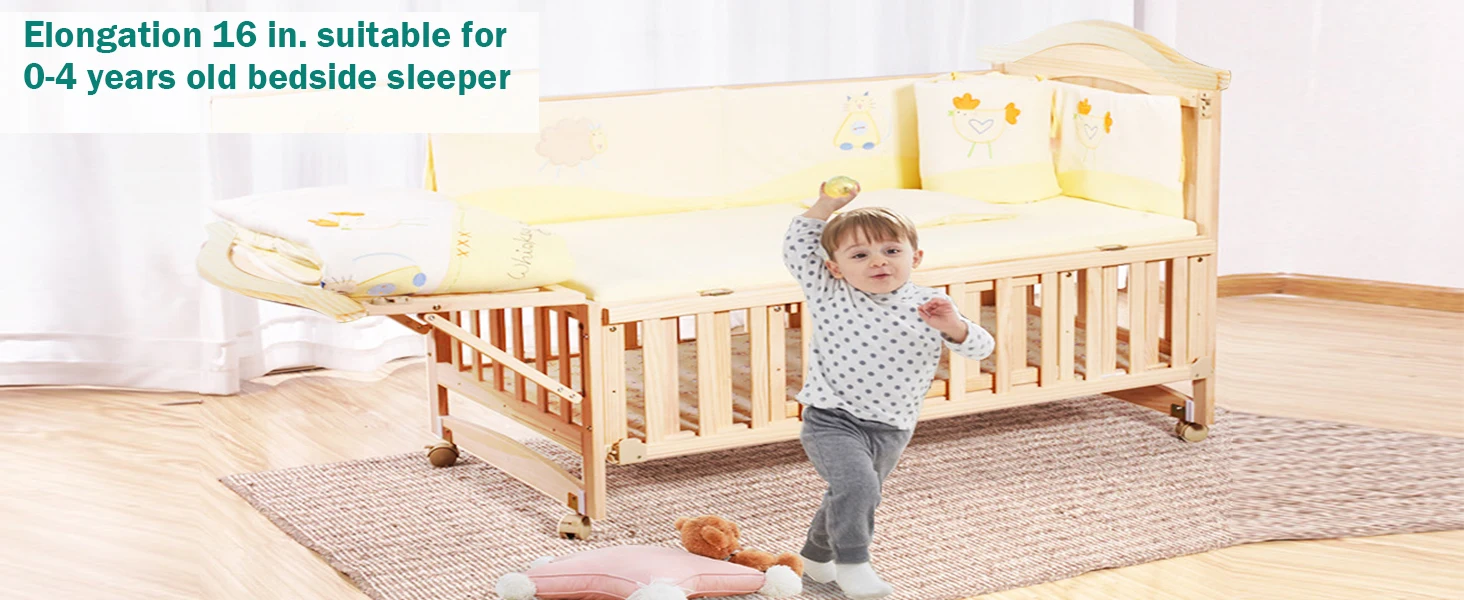 Elongation 16In Bed: The final conversion option is an elongation bed. The crib’s footboard are typically used as the foot of the bed. This configuration provides a larger sleeping space suitable for older children or teenagers.