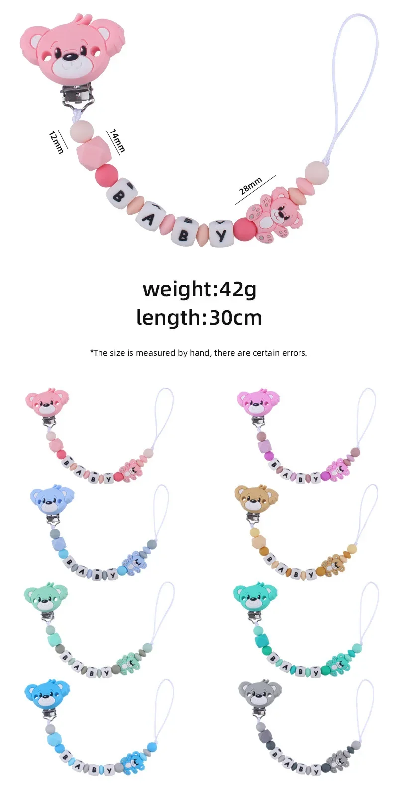 3. Made of silicone beads and beech wood, without sharp edges and corners, it will not harm the baby.