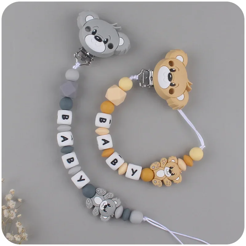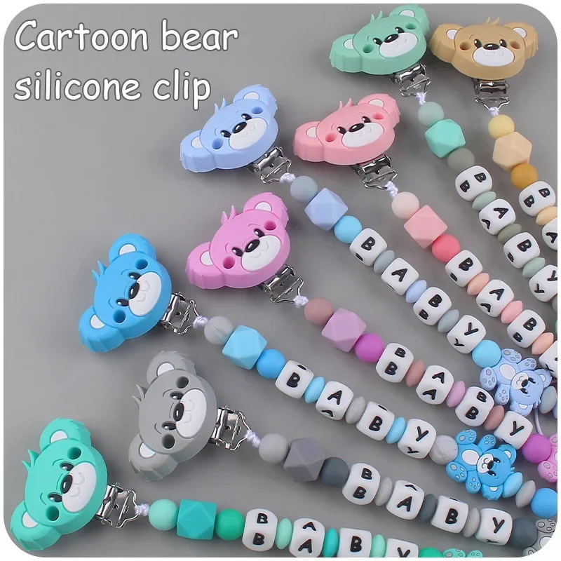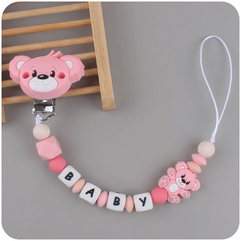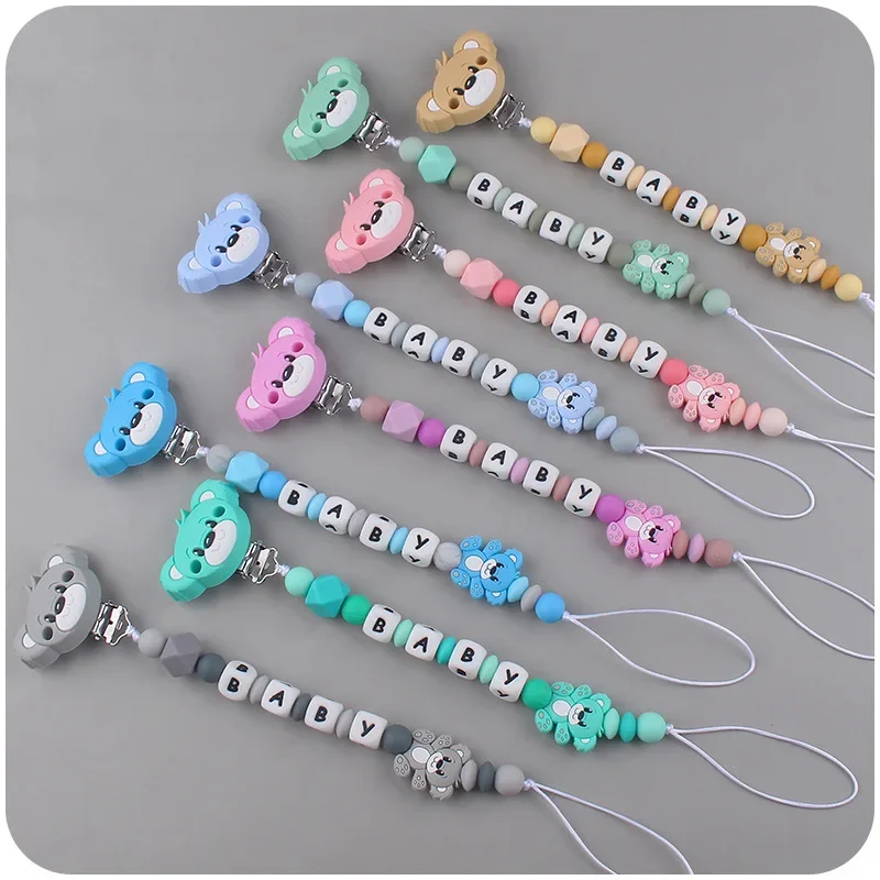 Baby Customizable Personalized Name Cartoon Silicone Beads Pacifier Chain for Teether Nursing Toys Nipple Dummy Holder Chains
