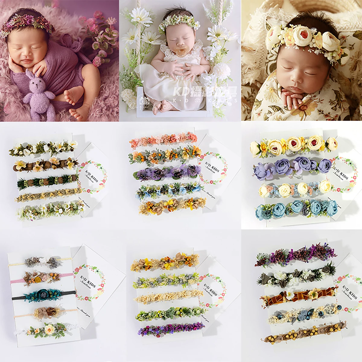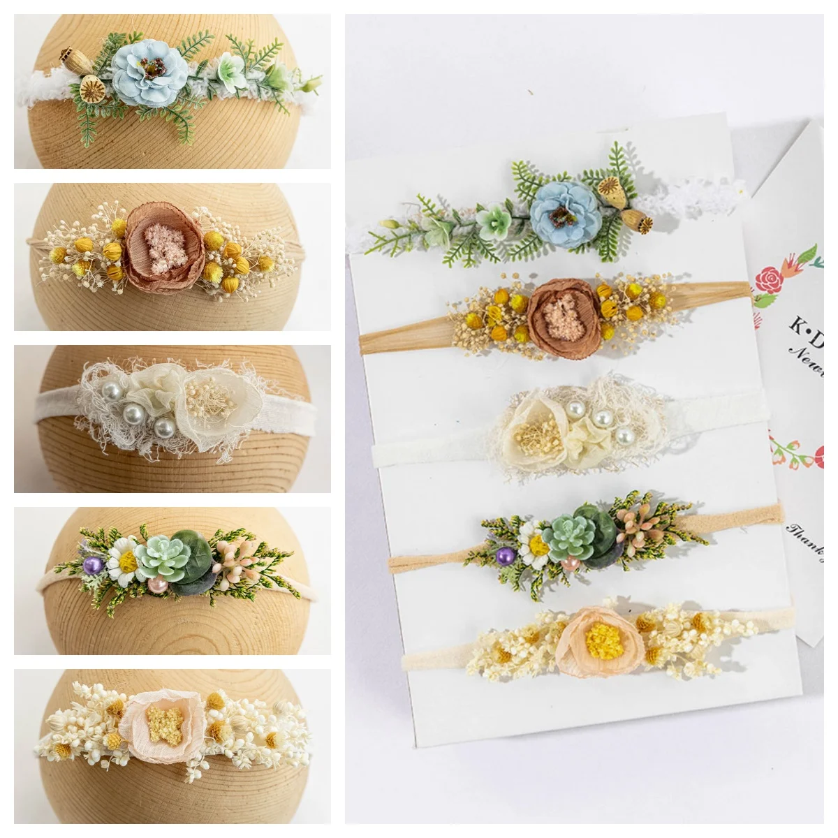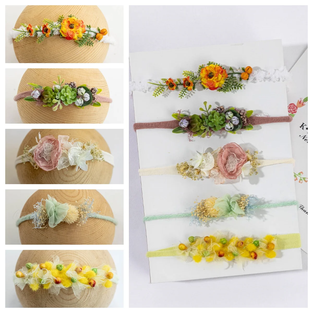 Baby Flower Headband Newborn Photography Props 0-1 Month Children Shoot Hairband Elastic Adjustable Headband Studio Accessories