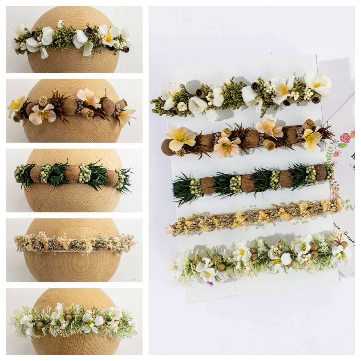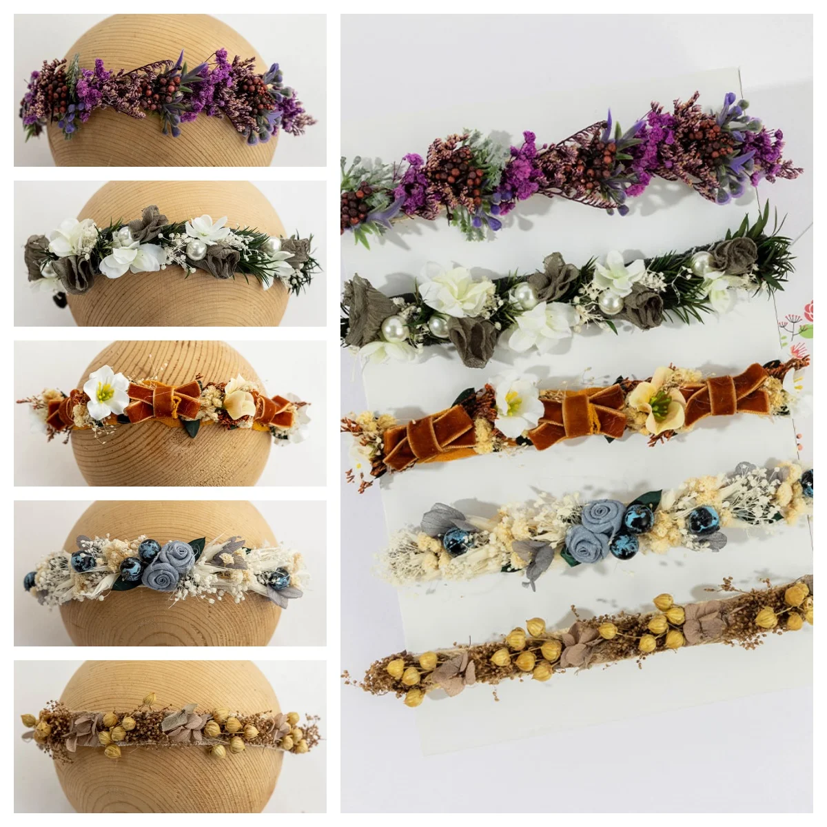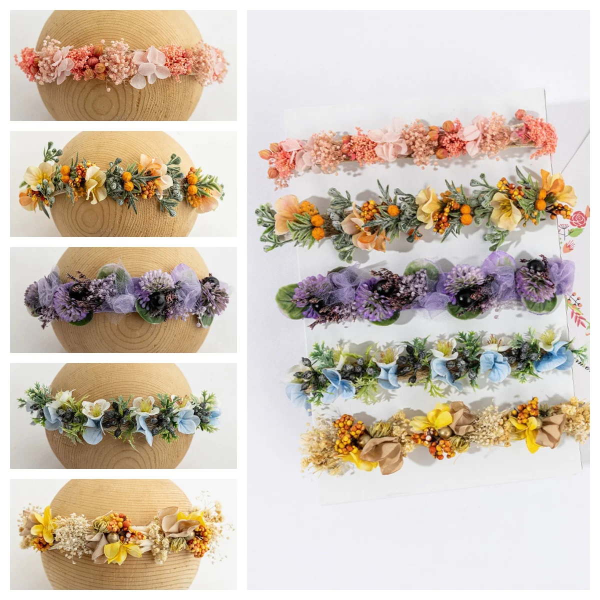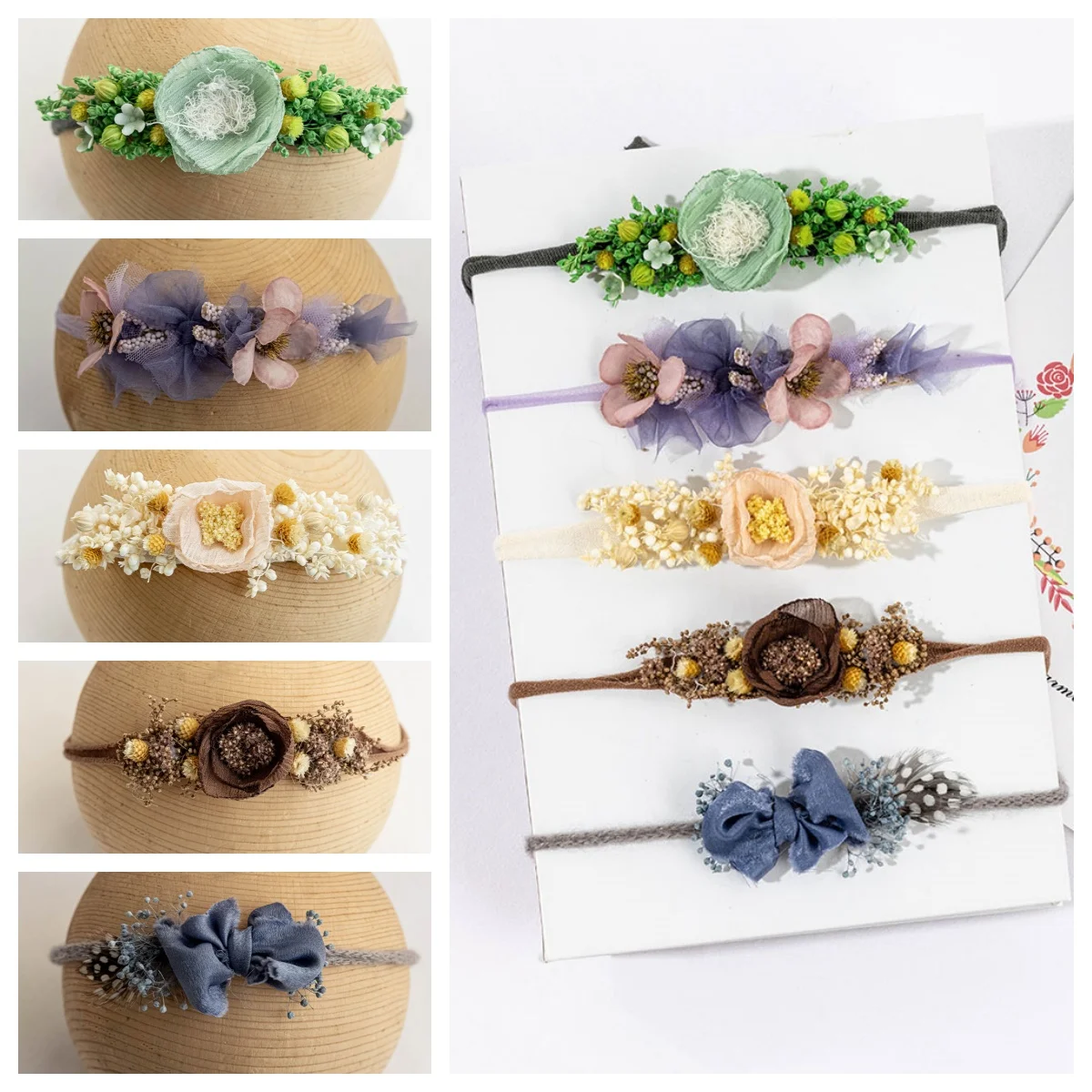 Baby Flower Headband Newborn Photography Props 0-1 Month Children Shoot Hairband Elastic Adjustable Headband Studio Accessories