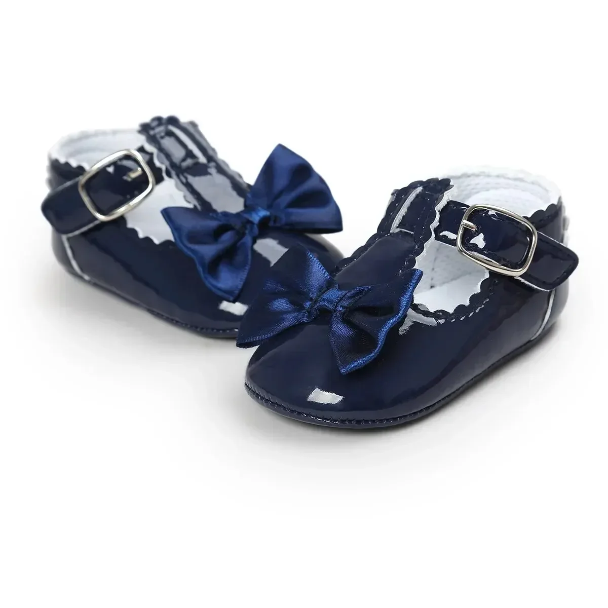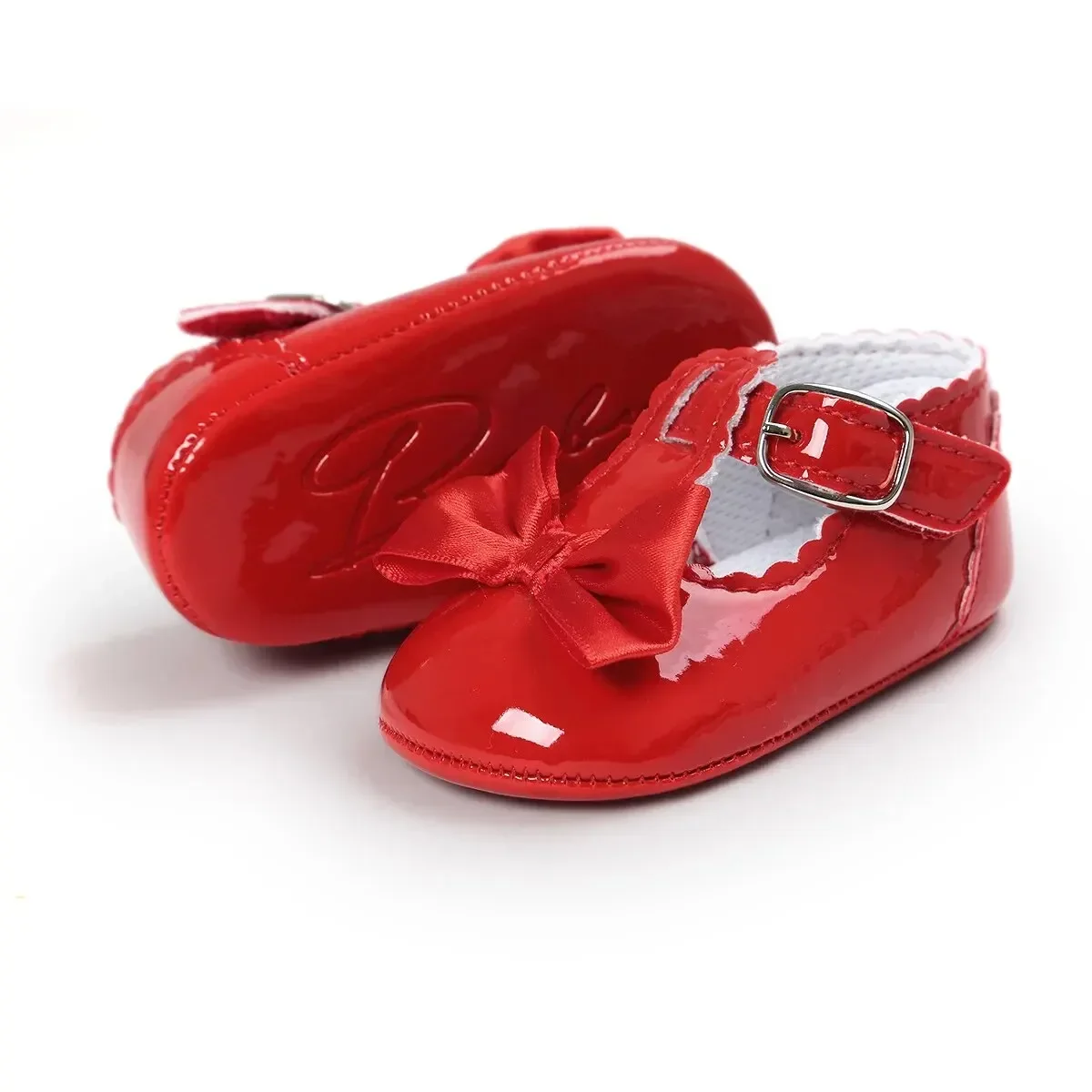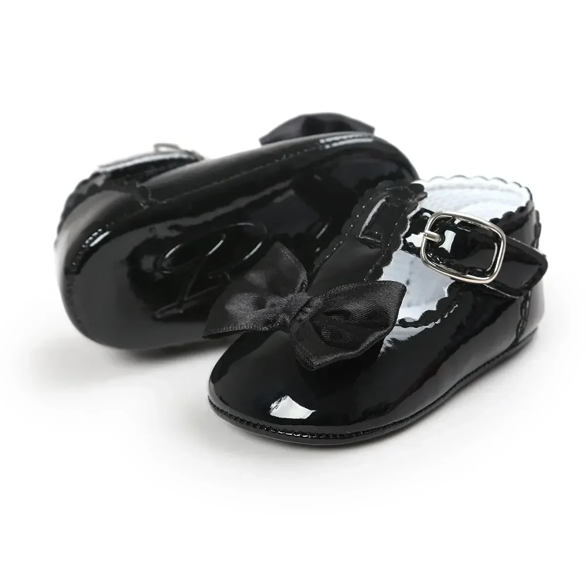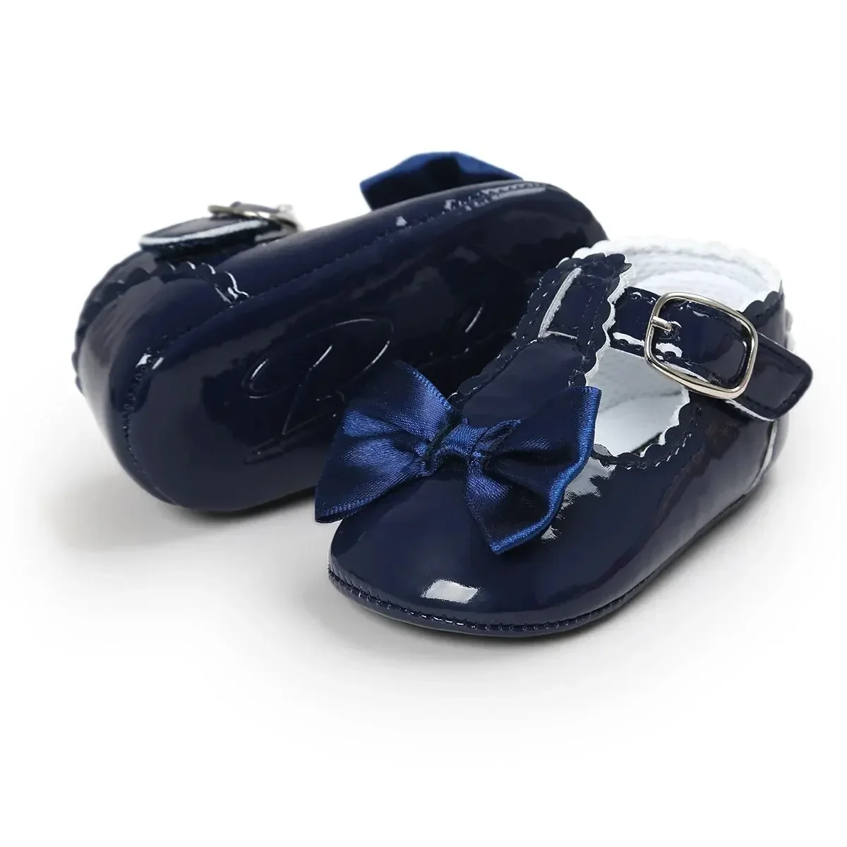 Baby Girls Shoes Classic Bowknot Rubber Sole Anti-slip PU Girls Dress Shoes First Walker Toddler Crib Baby Shoes