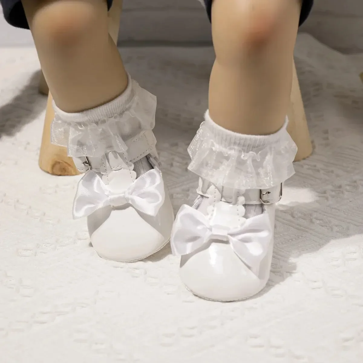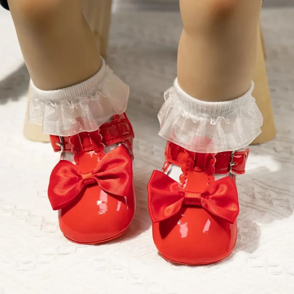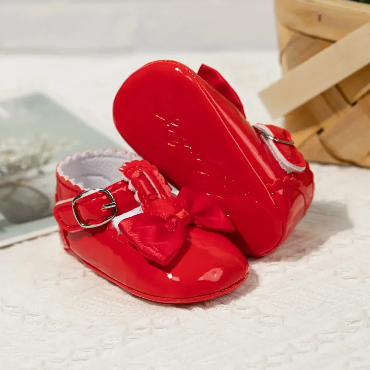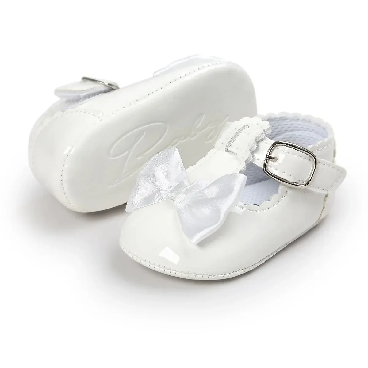 Baby Girls Shoes Classic Bowknot Rubber Sole Anti-slip PU Girls Dress Shoes First Walker Toddler Crib Baby Shoes