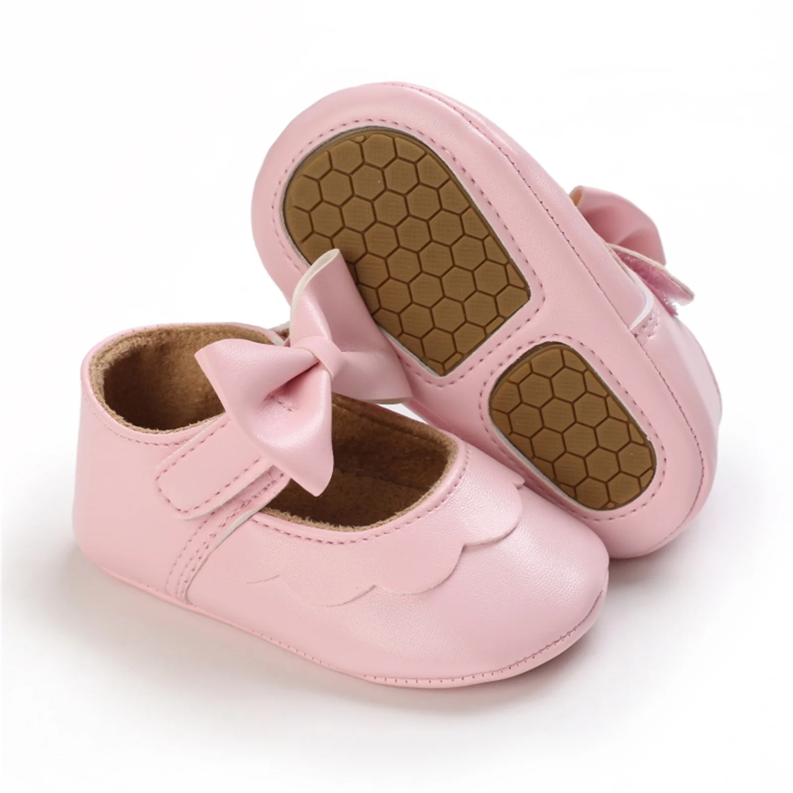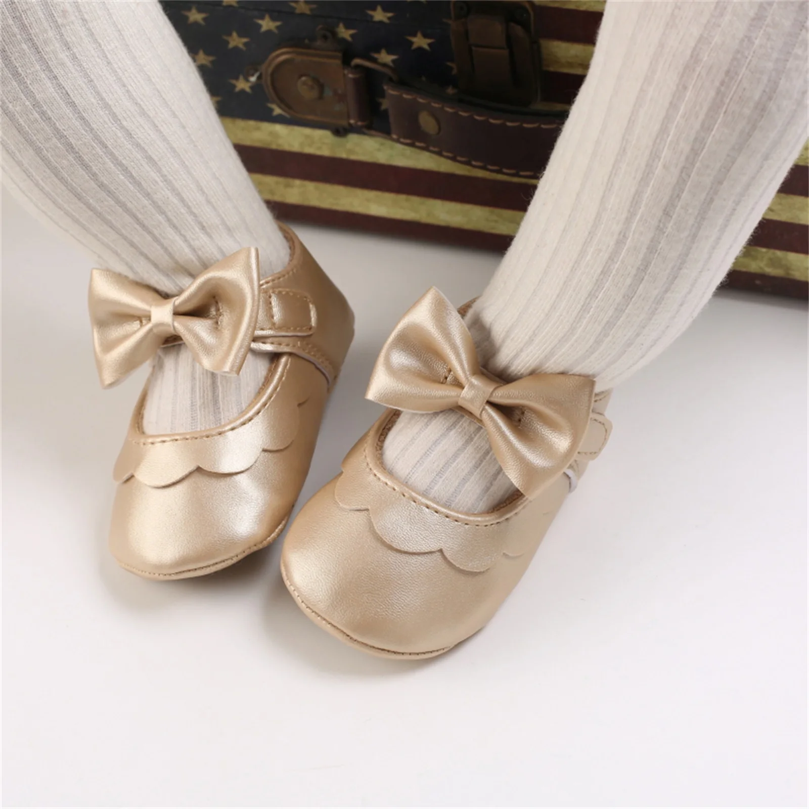 Baby Girls Shoes Mary Jane Flats Princess Bowknot Dress Shoes PU Anti-slip Soft Sole First Walkers Crib Shoes for Infants