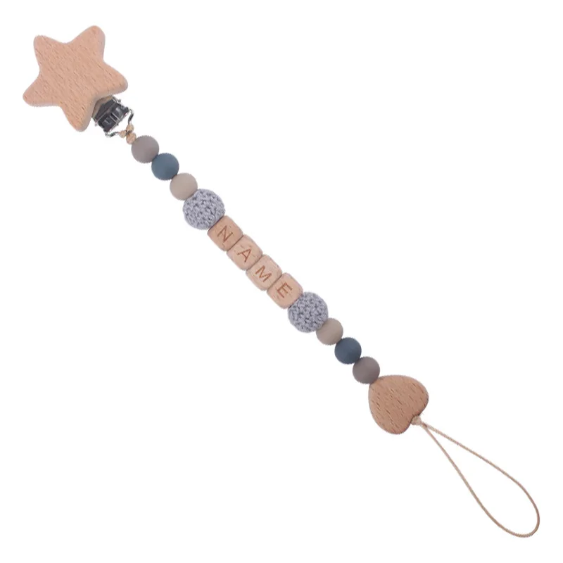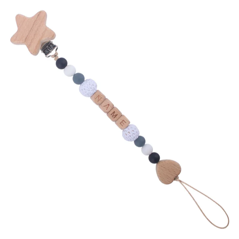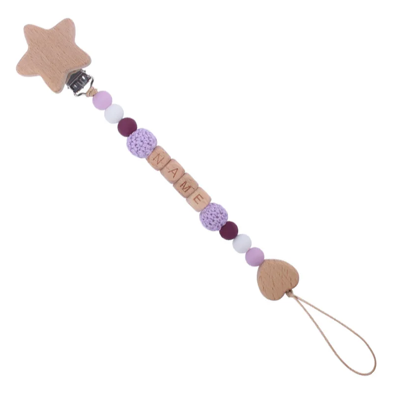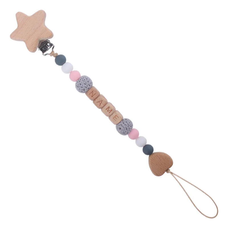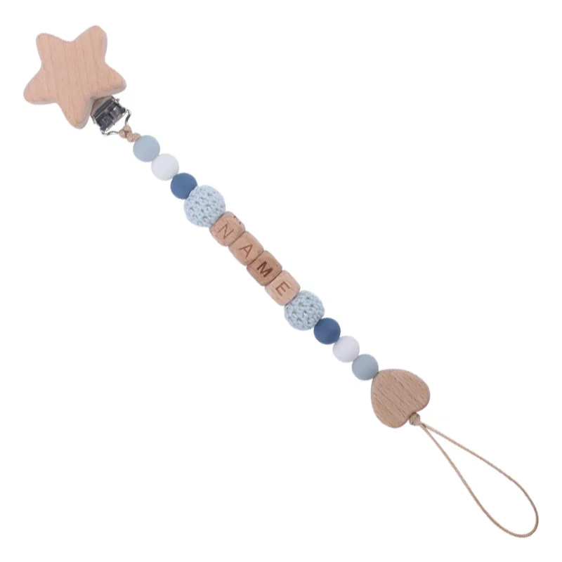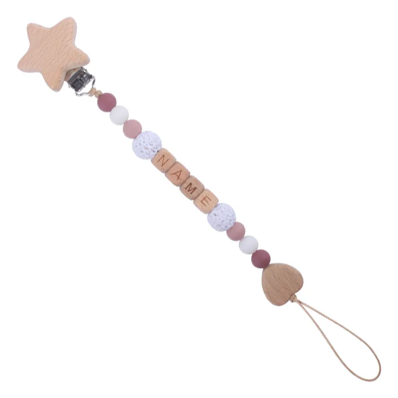 New Beech Wood Baby Pacifier Clips Personalized Name Nipple Holder Chain for Baby Teether Toy Anti-Lost Chains Custom Dummy Clip