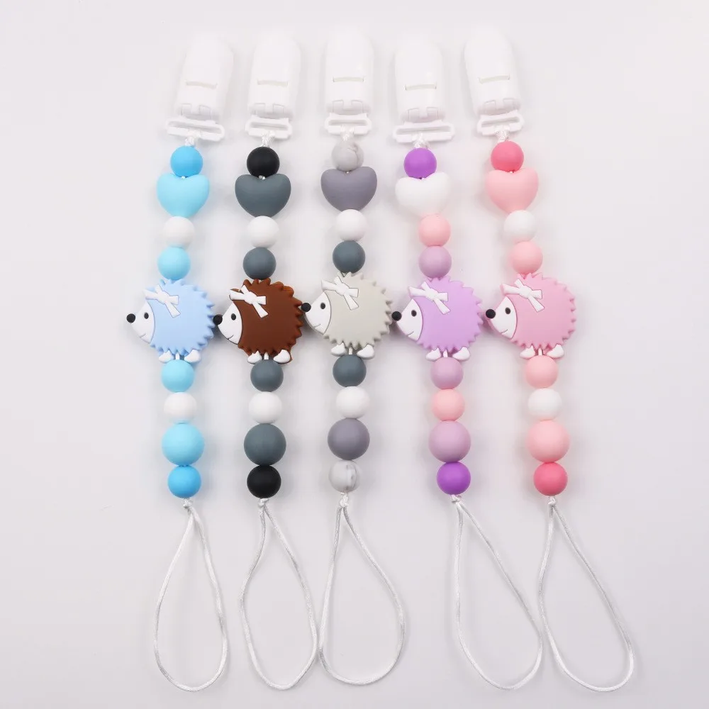 Baby Pacifier Clip Chain Hedgehog Silicone Pendant Teether Beads Holder For Infant Nipple Baby Teeth